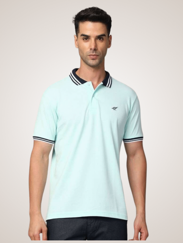 Light Blue Polo T-Shirt for Men with Contrast Collar & Sleeve Tipping (ALTSS24PLO251)