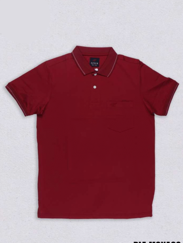 Classic maroon polo T-shirt with subtle contrast piping on the collar and sleeves. Crafted from premium metty fabric for comfort and durability.