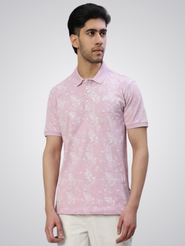 Light Pink Floral Print Cotton Polo T-Shirt for Men (JPSTSPOMS064)