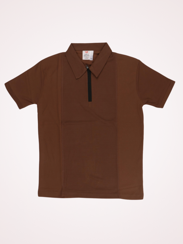 Brown Half-Sleeve Polo T-Shirt with Zip Placket – Only Brand
