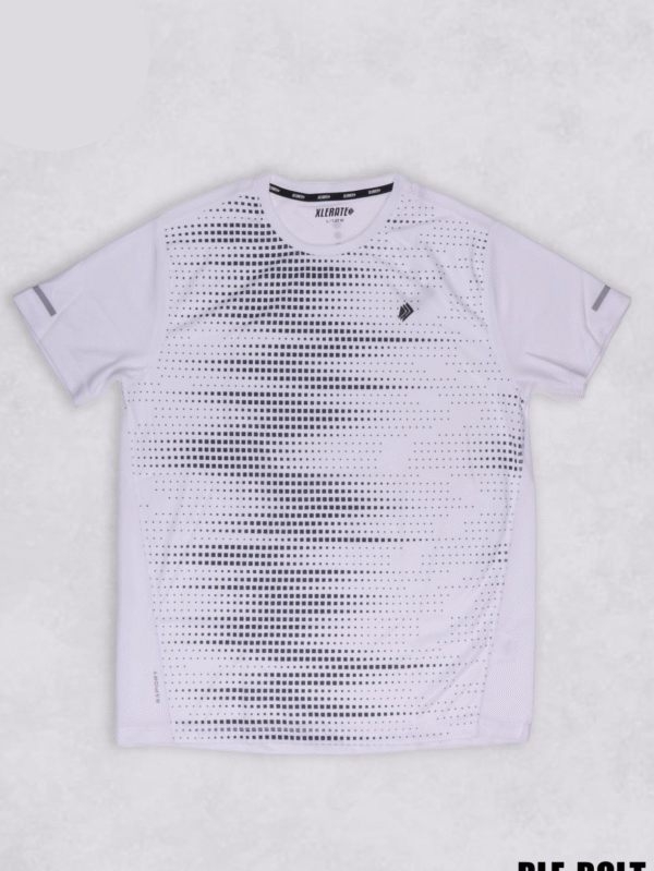 RLE-BOLT Men’s White Pixel Gradient Sports T-Shirt
