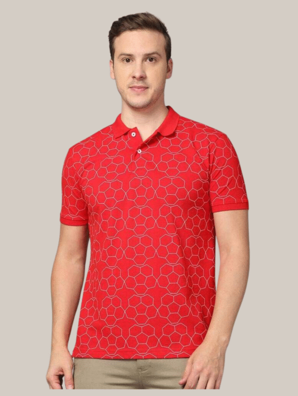 Red Polo T-Shirt for Men with Geometric Pattern Design (ALTSS24PLO262)