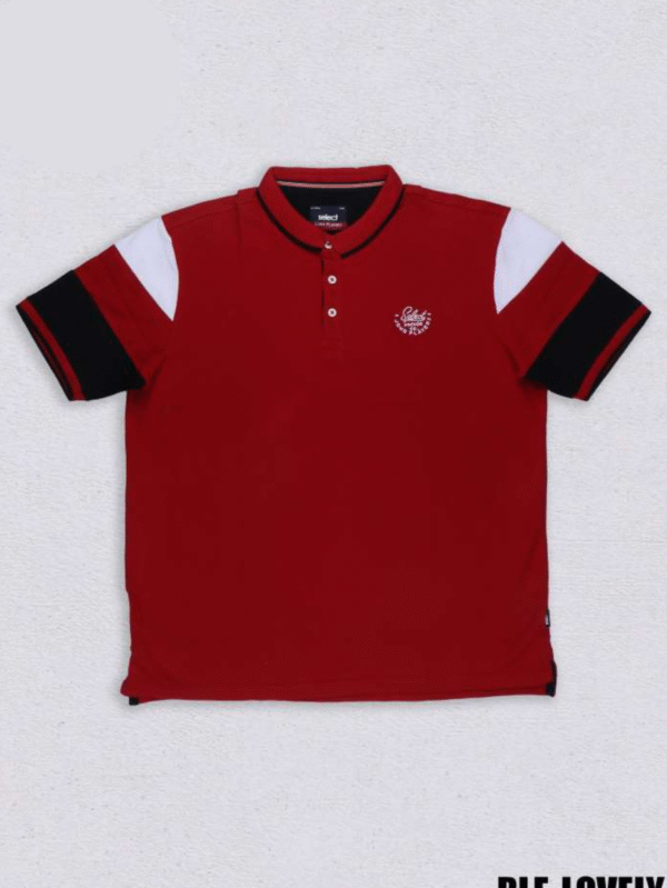 Red Polo T-Shirt for Men with Black & White Colorblock Sleeves (RLE-LOVELY)