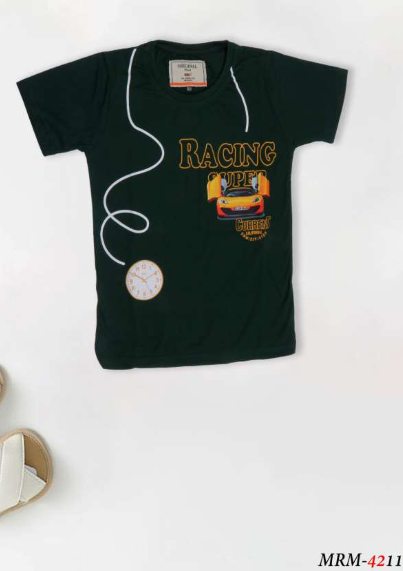 Fuel your child’s love for cars and speed with this “Racing Super” dark green cotton t-shirt for boys. Featuring a colorful race car print with open doors, bold typography, and a stopwatch graphic, this tee combines playful energy with trendy street-style vibes. It’s perfect for your little racer who loves cars, action, and adventure.