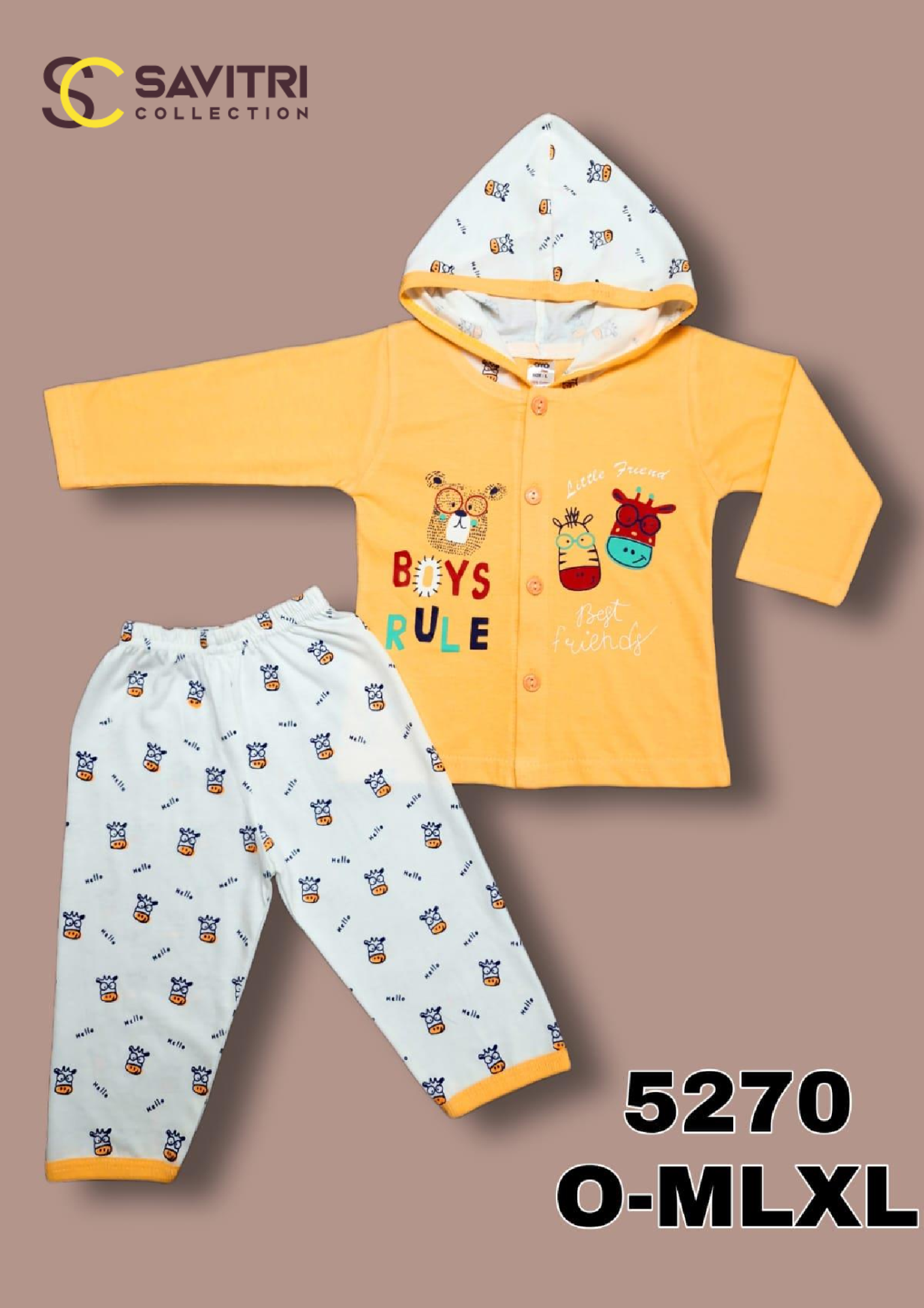 Add cuteness and comfort to your little one’s wardrobe with the FS-5270 Boys Rule Hoodie Nightwear Set. Designed in bright cheerful yellow and white, this two-piece cotton set includes a cozy hooded top and matching pajama bottoms. With fun animal prints and colorful text, it’s perfect for bedtime or all-day lounge wear.