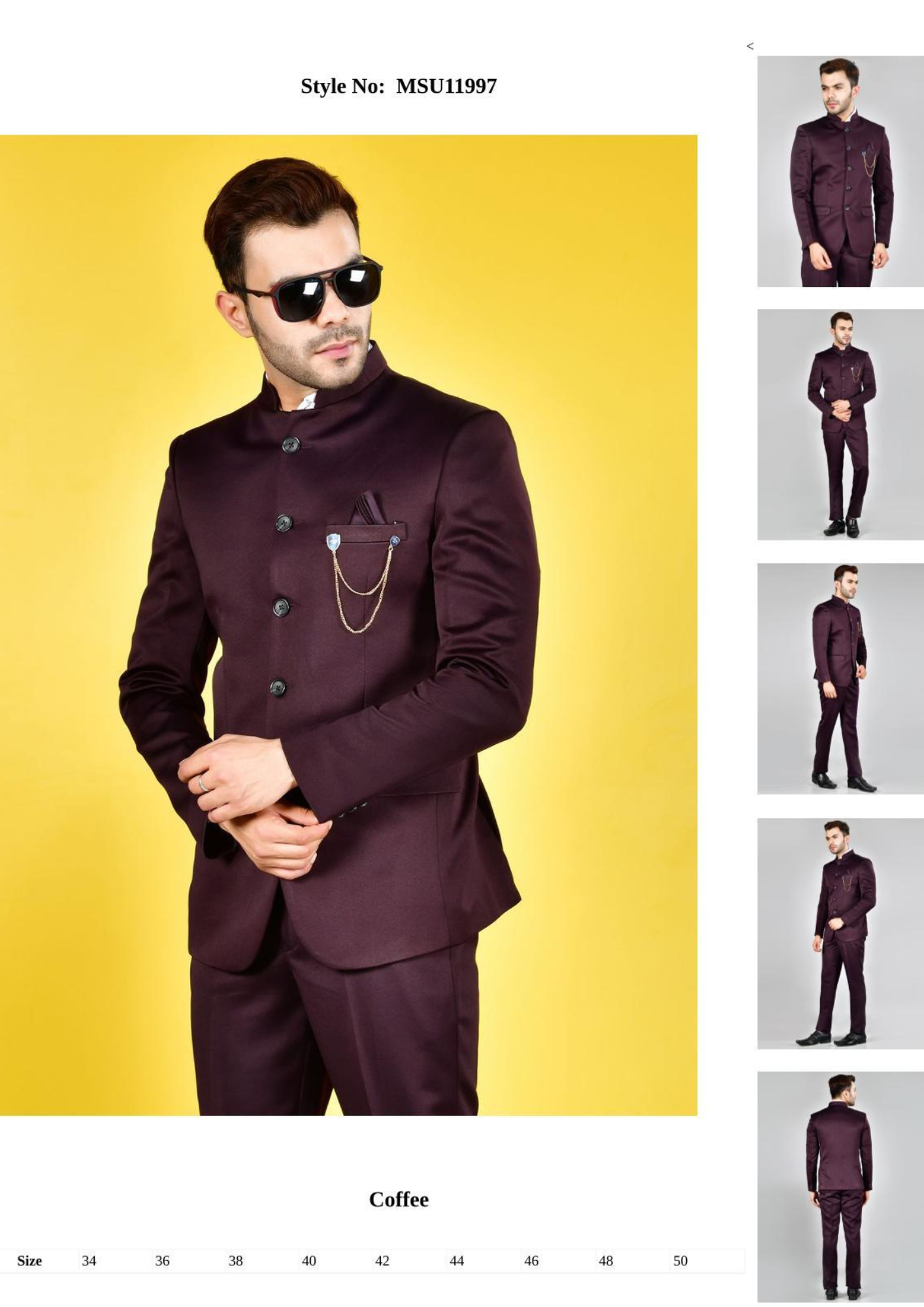 Step into timeless elegance with this Coffee Brown Indo-Western Suit, a perfect blend of tradition and modern sophistication. Made from premium imported fabric, this suit features a sharp mandarin collar, rich coffee-brown hue, and a statement designer chain attached to the pocket for added charm. The structured fit and smooth finish make it an impeccable choice for weddings, receptions, festive events, or high-profile parties.
