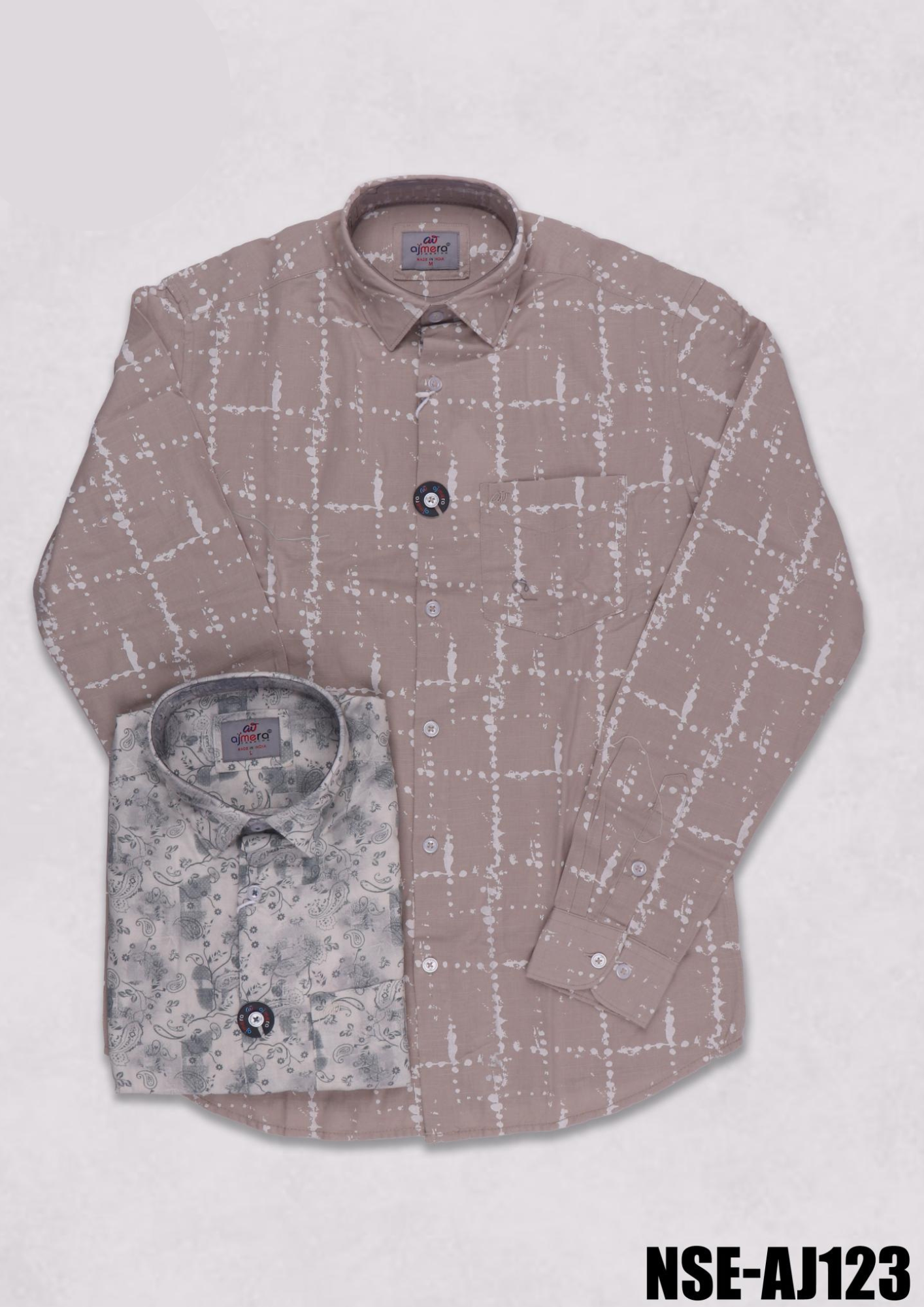Redefine casual elegance with the Cotton Printed Full Sleeve Shirt – Style NSE-AJ123. Made from premium cotton fabric, this shirt ensures lightweight comfort and breathability, making it ideal for all-day wear. The collection features two unique designs – a modern abstract grid print in earthy beige and a stylish floral paisley print in soft grey tones. With a button-down front, classic spread collar, and neatly tailored fit, this shirt offers the perfect balance of comfort and contemporary style. Whether for office wear, casual outings, or evening gatherings, NSE-AJ123 adds a fresh edge to your wardrobe.