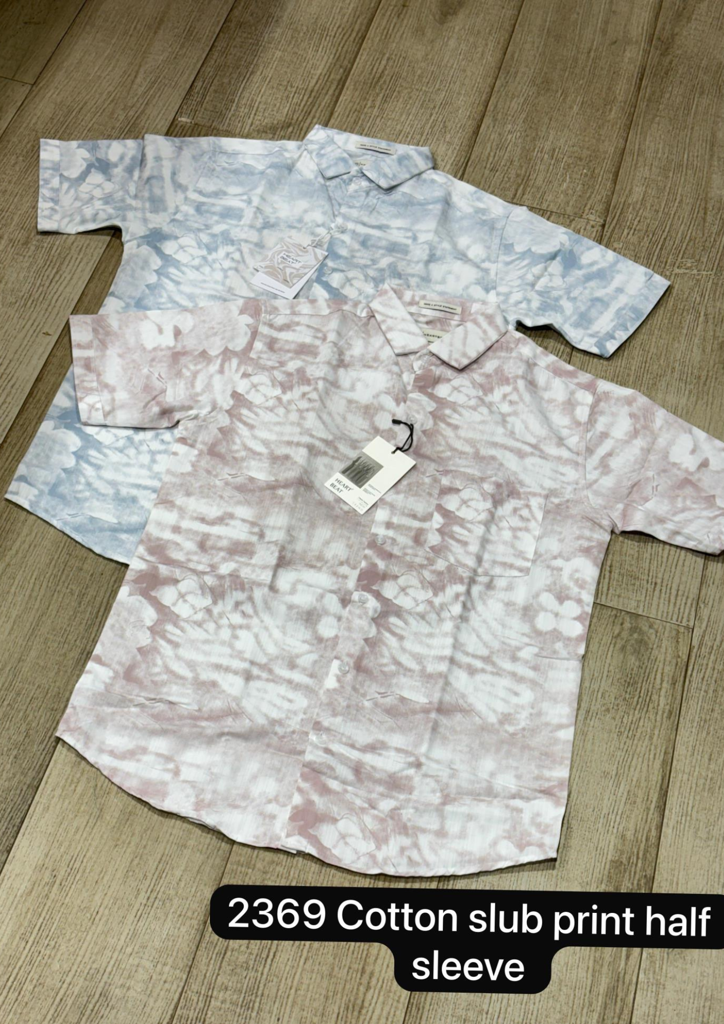 Make a bold yet effortless fashion statement with the Cotton Slub Print Half Sleeve Shirt – Style 2369. Designed with a modern tie-dye inspired print, this shirt brings a trendy twist to your casual collection. Crafted from breathable cotton slub fabric, it ensures all-day comfort while keeping you stylish. The button-down front and classic collar make it versatile enough for both relaxed outings and semi-casual gatherings. Available in soft pastel tones of blue and mauve, this shirt is perfect for summer styling.