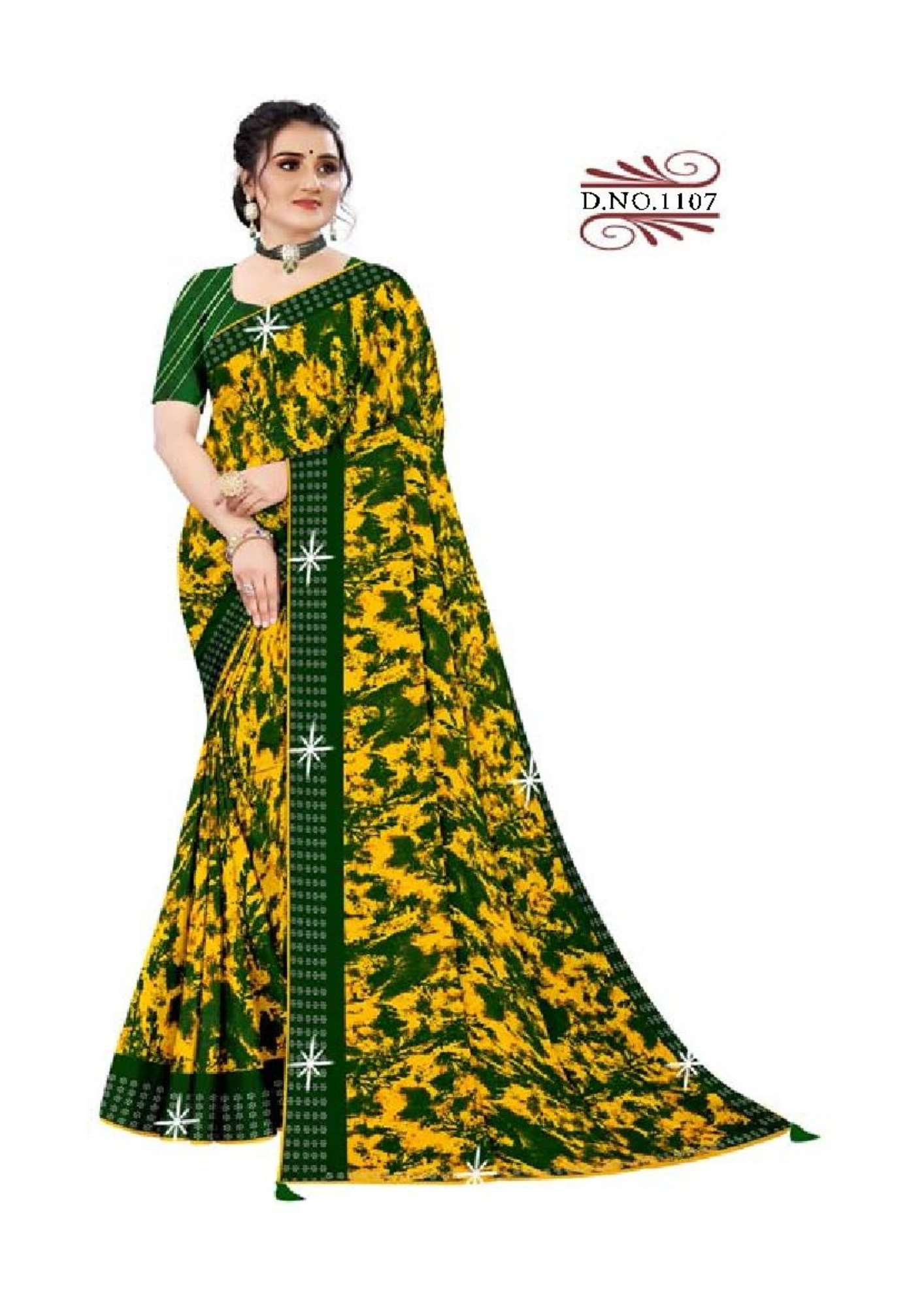 Be the first to review “Elegant Mustard Yellow & Green Printed Saree with Contrast Border – Daily & Office Wear Saree with Blouse Piece”