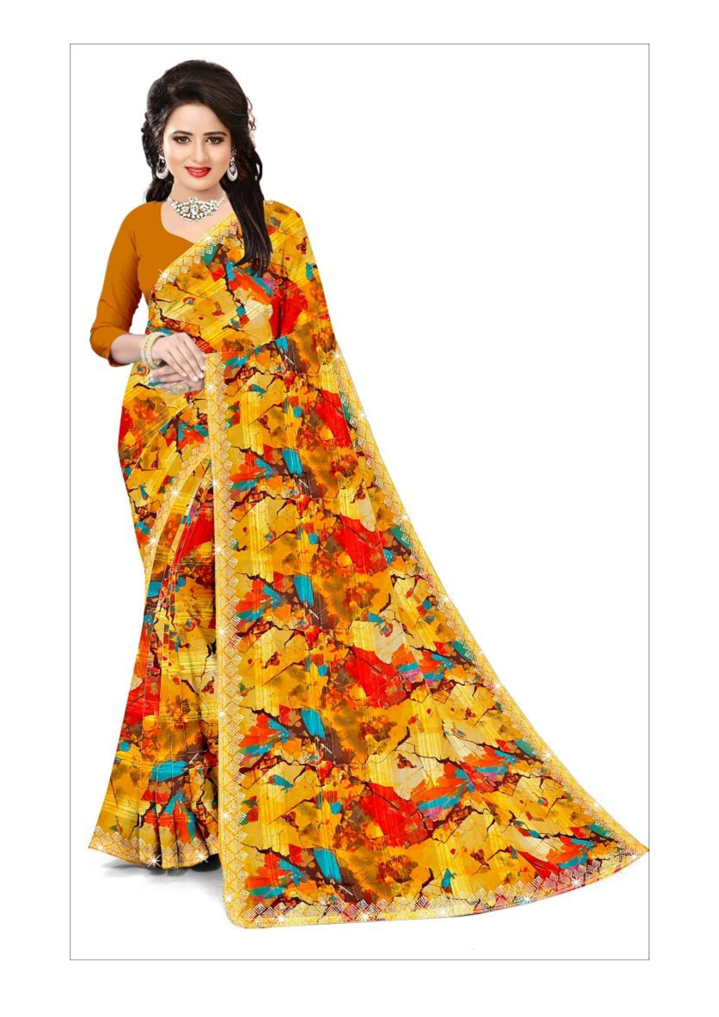 Crafted from premium lightweight georgette fabric, it offers a soft and graceful drape, ensuring you stay comfortable throughout the day. Perfect for festive occasions, office wear, casual gatherings, and cultural celebrations, this saree comes with an unstitched blouse piece for personalized tailoring. Its eye-catching design and subtle border detailing make it a standout piece in any wardrobe.