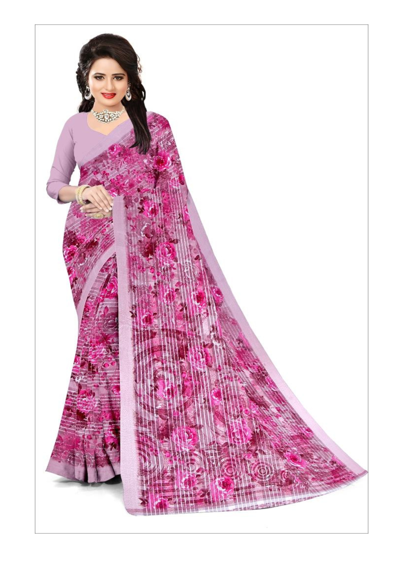 Crafted from soft, lightweight fabric, this saree ensures maximum comfort while maintaining a stylish and graceful drape. It comes with a matching unstitched blouse piece, allowing you to customize your look effortlessBuy graceful pink floral printed saree online. Lightweight and elegant design perfect for parties, casual events, or festive wear. Includes matching unstitched blouse piece.ly. Pair it with traditional jewelry and heels to complete your stunning ethnic ensemble.