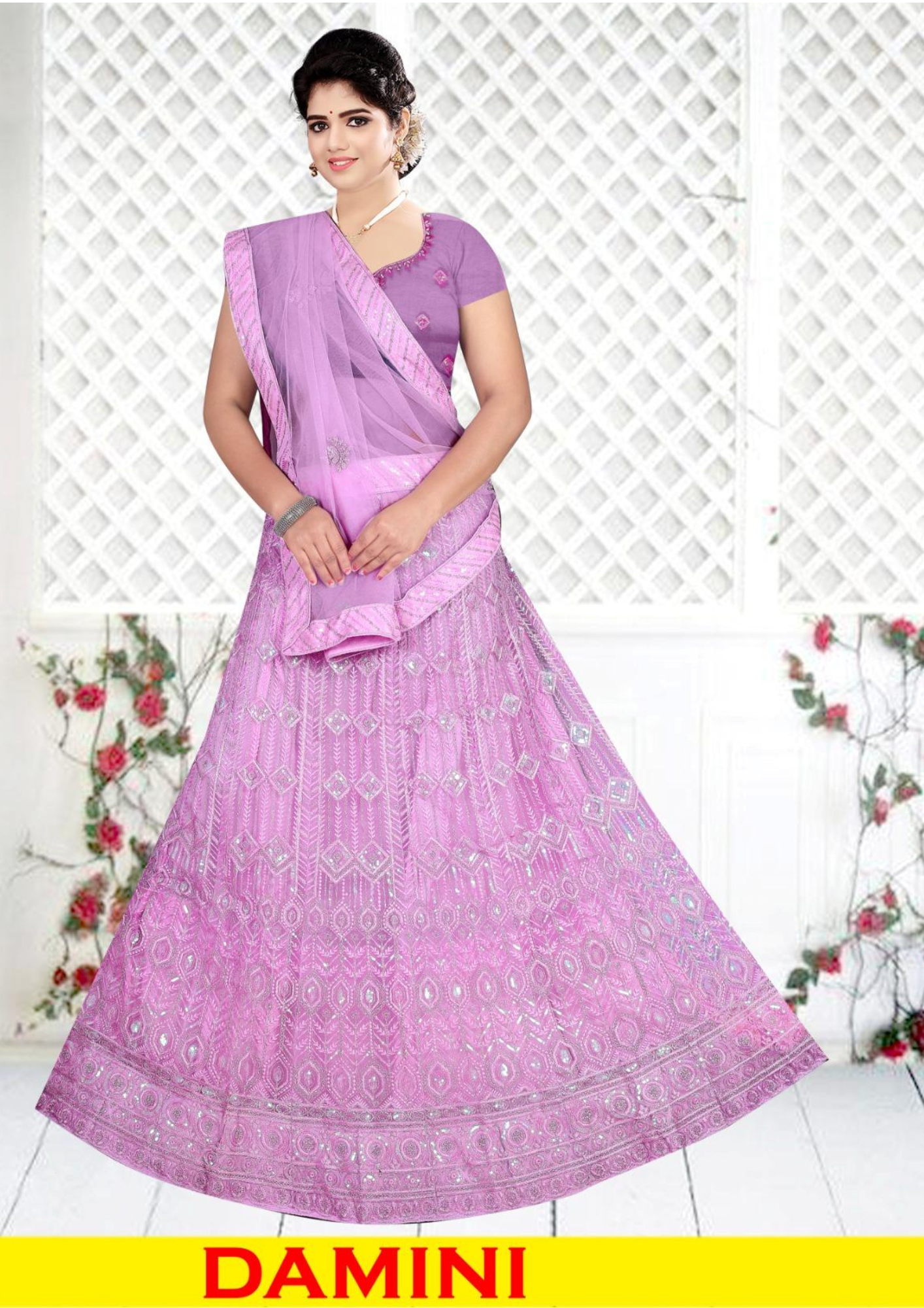 Grace your celebrations with the ethereal charm of the JAC-DAMINI Lavender Net Embroidered Lehenga Choli, designed to make every occasion shine brighter. This exquisite ensemble features a pastel lavender net lehenga adorned with intricate sequin, thread, and zari embroidery arranged in geometric floral patterns. The semi-stitched design allows for a perfect customized fit, ensuring comfort with style. The matching blouse complements the lehenga beautifully, while the soft net dupatta with embroidered lace borders adds a delicate finishing touch. Perfect for festive occasions, weddings, and receptions, this outfit blends traditional detailing with modern elegance.