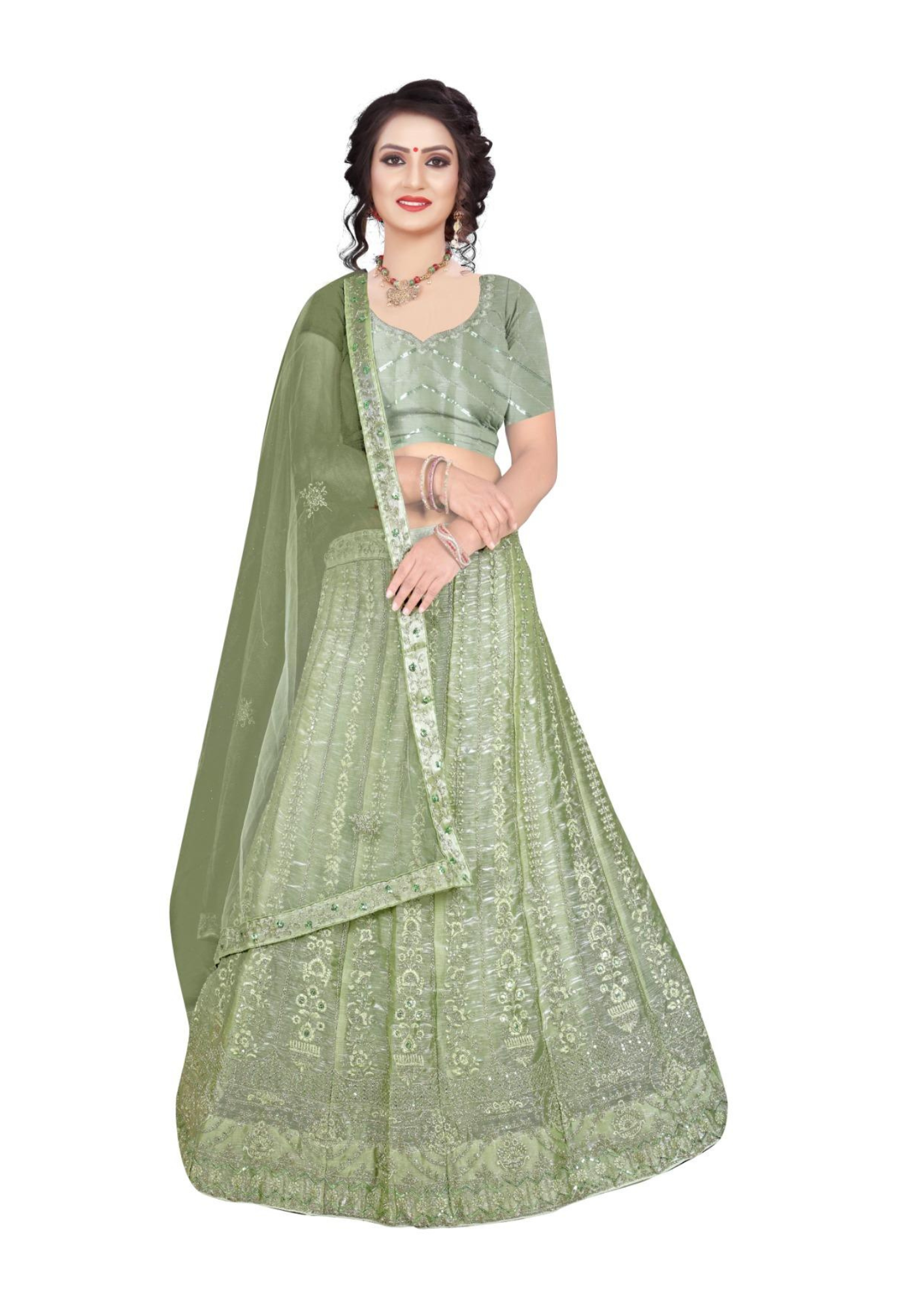 Lehenga Fabric: Premium Net with Heavy Thread & Sequin Embroidery