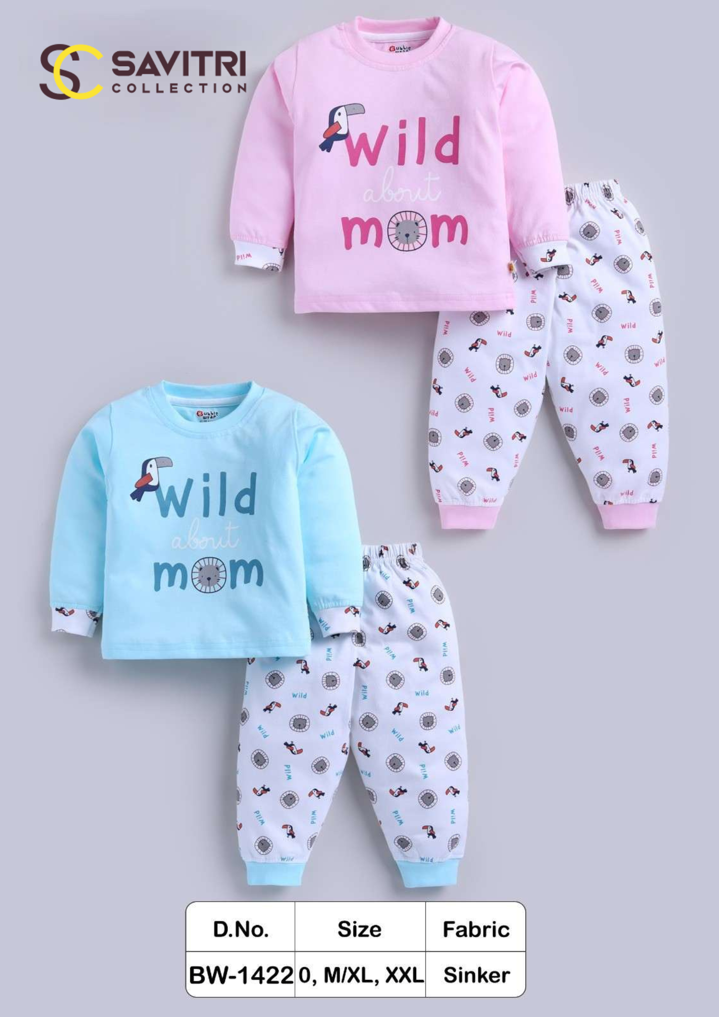 Add charm and comfort to your little one’s wardrobe with the Savitri Collection Kids Cotton Night Suit. Designed with love, this set includes a soft full-sleeve top featuring the playful slogan “Wild About Mom” along with cute animal graphics, paired with matching pajama bottoms in fun all-over prints. Crafted from premium sinker cotton fabric, this night suit ensures a soft touch on delicate skin, breathability, and all-night comfort. Perfect for bedtime snuggles, casual lounging, or playful moments at home.