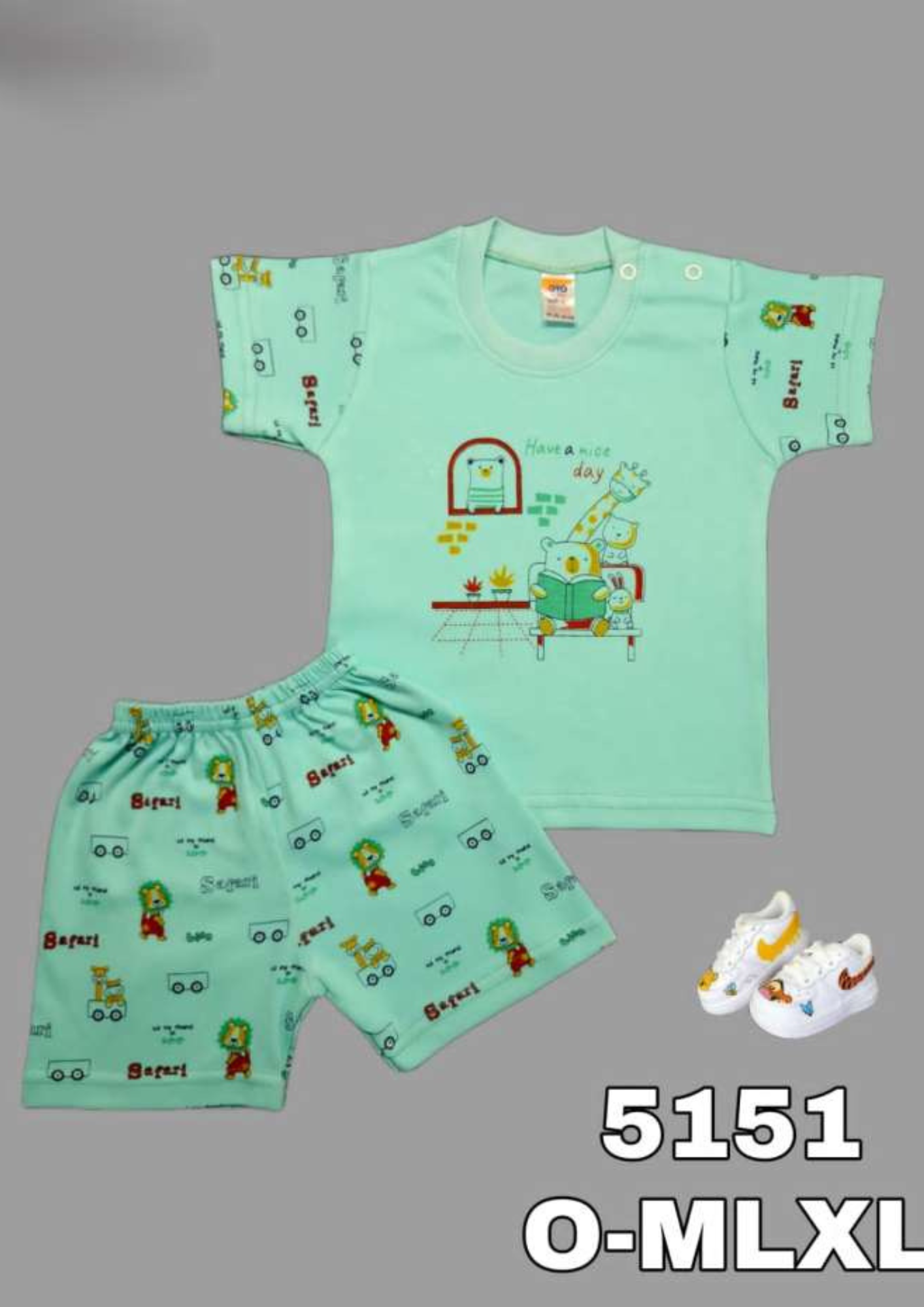 The half-sleeve T-shirt features a round neck with snap buttons on the shoulder for easy dressing. Paired with matching elasticated shorts, the outfit is breathable, lightweight, and gentle on your child’s skin — perfect for hot summer days, bedtime, or playful afternoons at home.