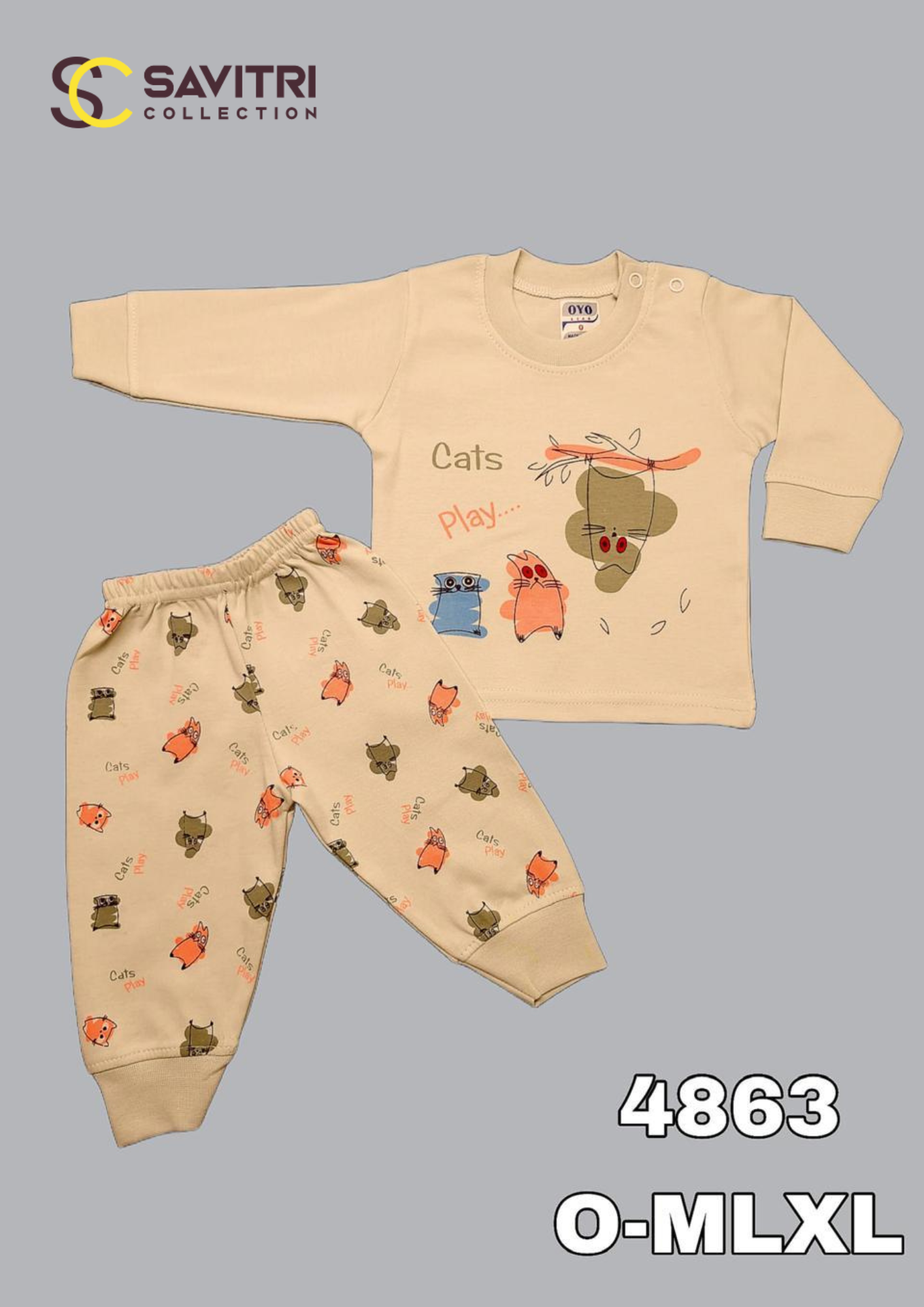 Keep your little one cozy and stylish with the Savitri Collection Kids Full Sleeve Night Suit. Designed in soft beige cotton fabric, this set includes a full-sleeve round neck top with a cute “Cats Play” print and matching printed pajama bottoms. The fabric is gentle on the skin, breathable, and perfect for both day and night wear. Its playful design makes it a fun yet practical outfit choice for kids.