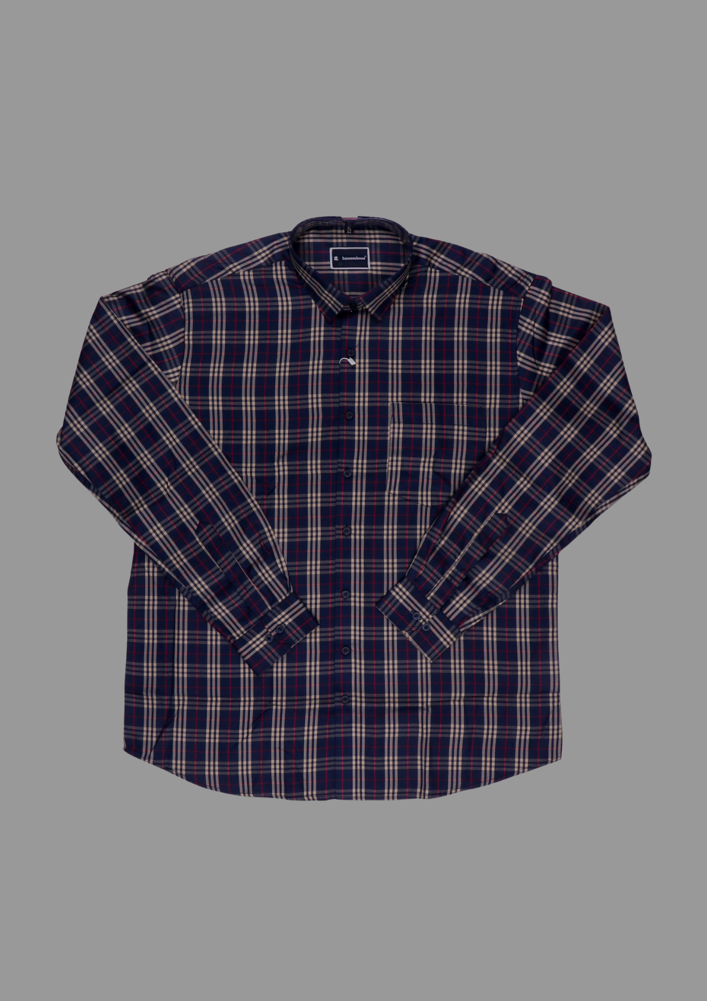 Upgrade your wardrobe with this timeless navy checked cotton shirt. Designed for comfort and style, this full-sleeve shirt features a classic checkered pattern in navy, red, and beige tones, making it versatile for both casual outings and semi-formal occasions. Crafted with breathable cotton fabric, it ensures all-day comfort while keeping you stylish. The button-down collar, full sleeves with adjustable cuffs, and a tailored fit add to its sophisticated appeal.