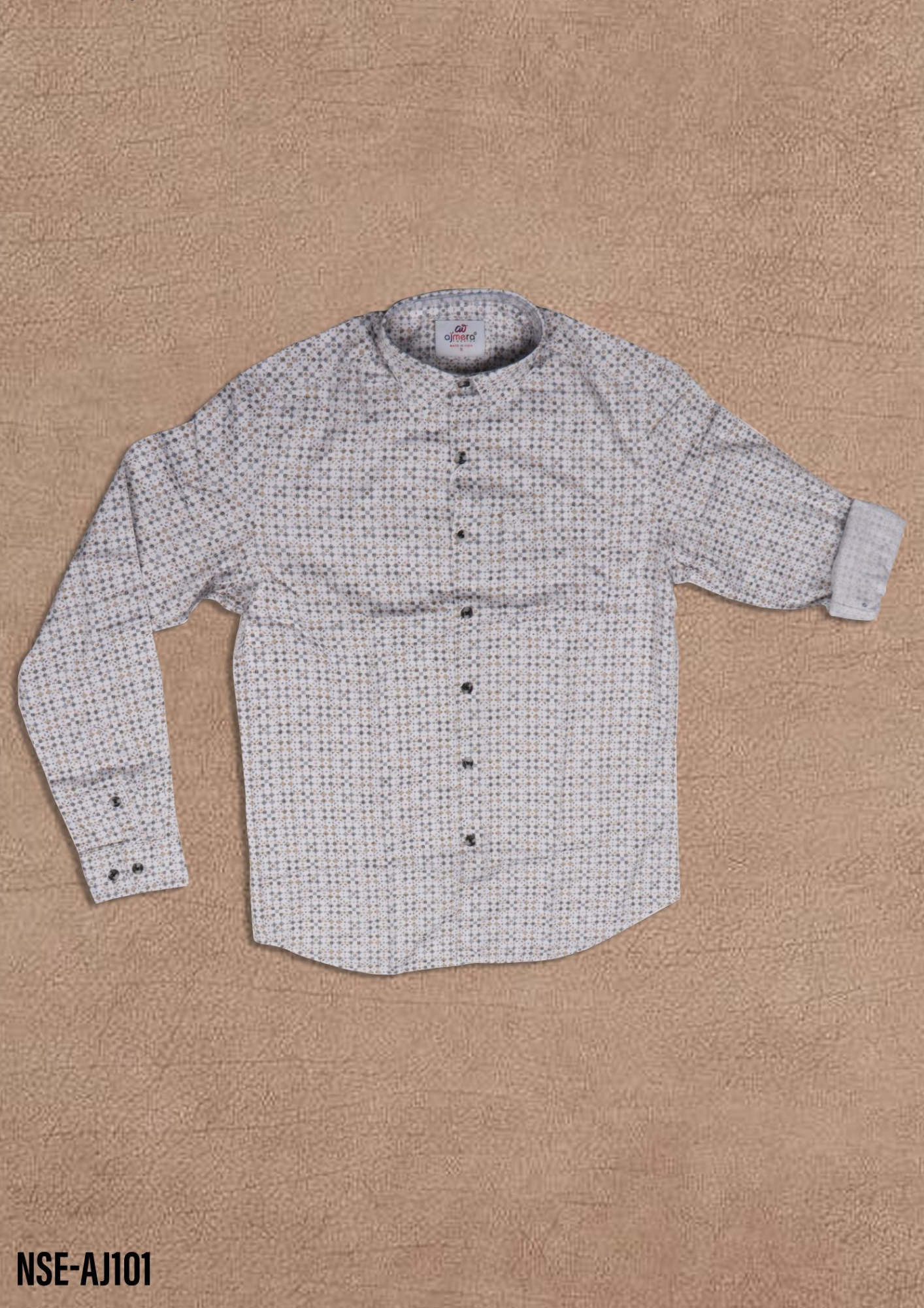 Men’s White Printed Cotton Shirt with Mandarin Collar – Ajmera NSE-AJ101