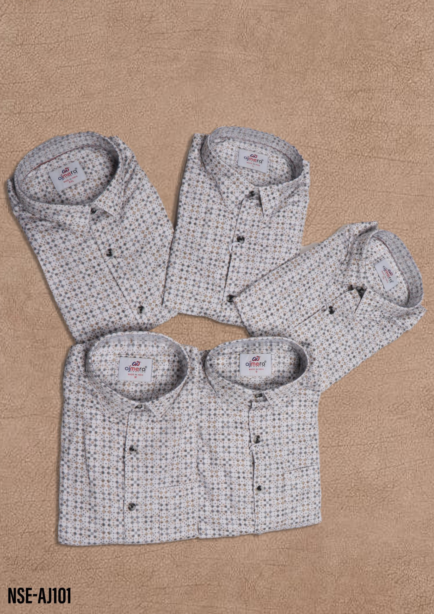 Be the first to review “Men’s White Printed Cotton Shirt with Mandarin Collar – Ajmera NSE-AJ101”