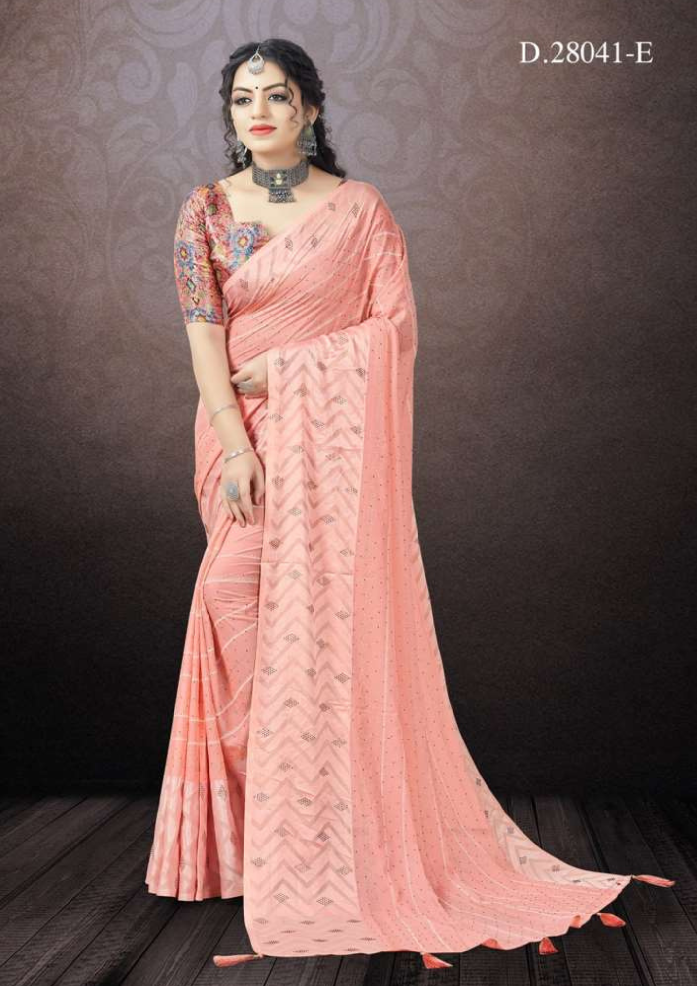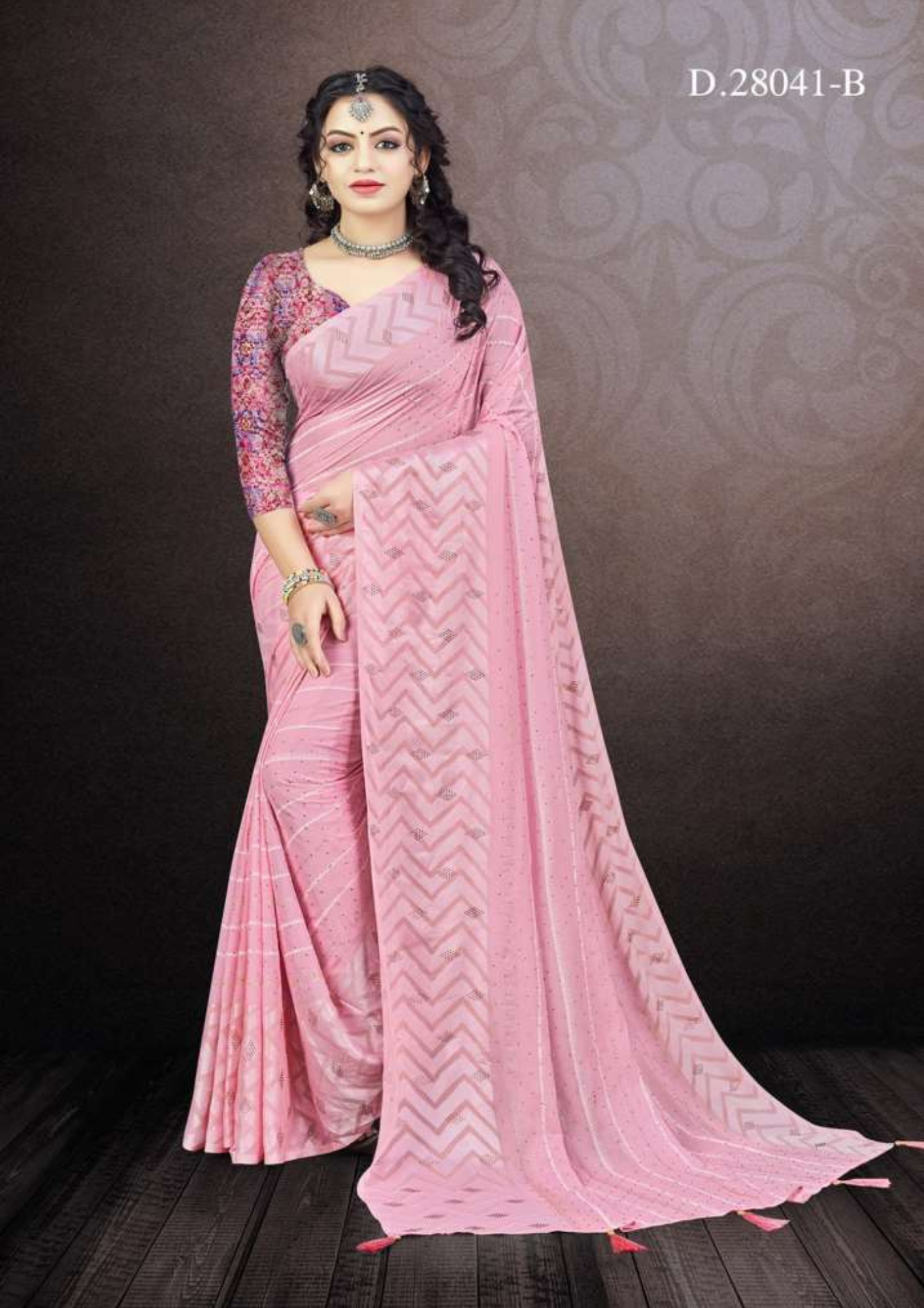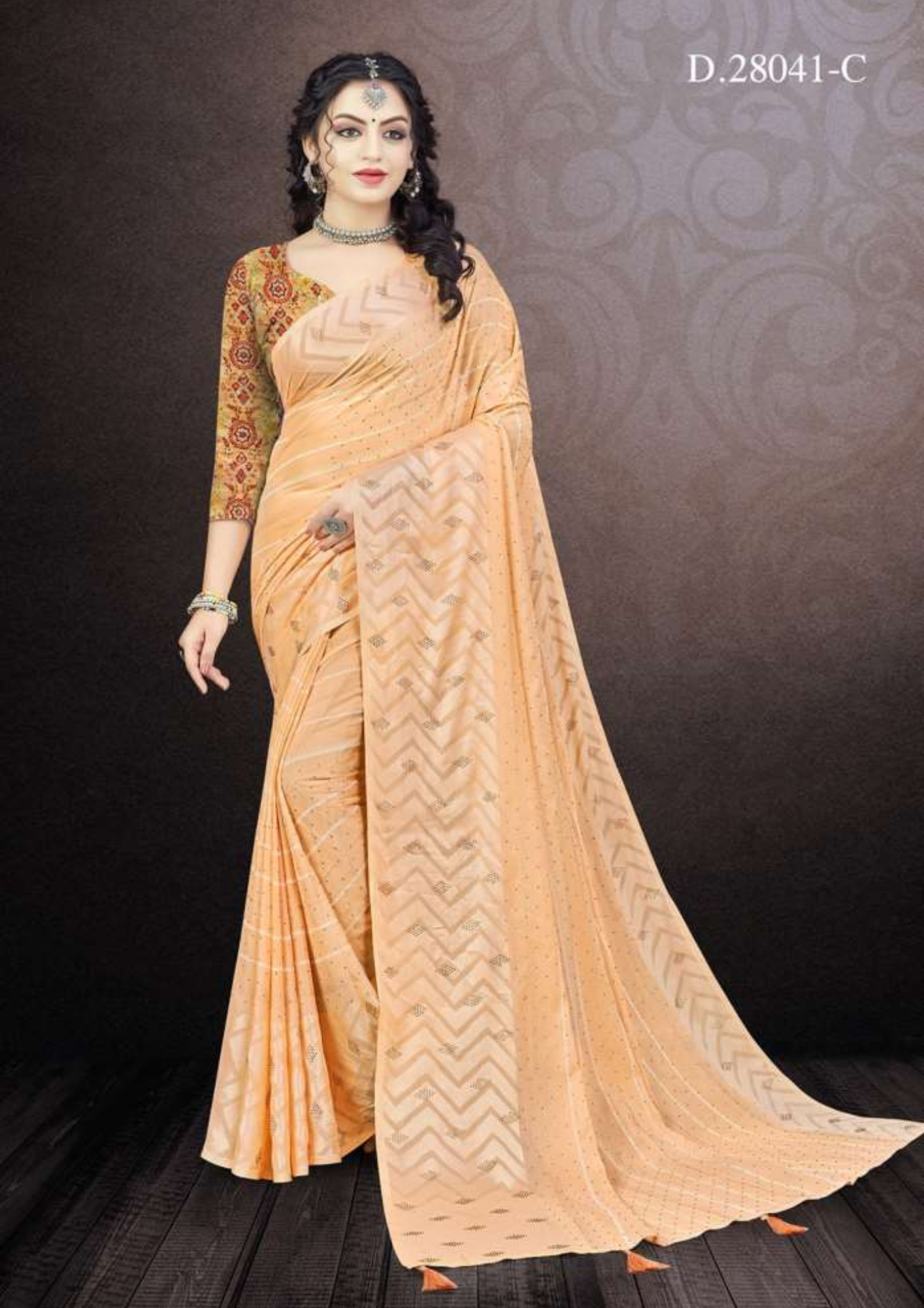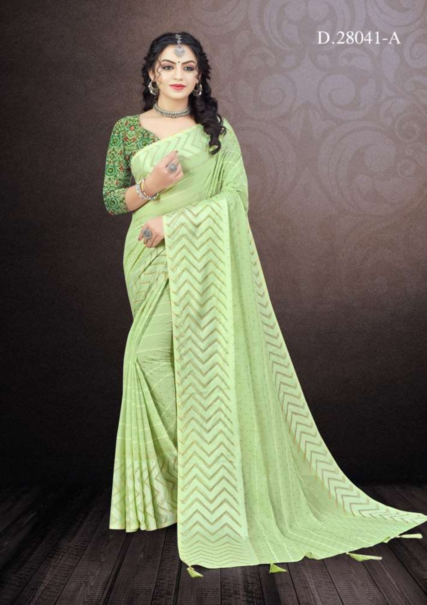 Step into elegance with this Mint Green Georgette Saree, designed with a subtle zigzag printed pattern that enhances its modern charm. The soft georgette fabric ensures a graceful drape, offering both comfort and sophistication. Paired with a contrasting embroidered blouse in rich tones, this saree perfectly blends traditional artistry with contemporary appeal. Ideal for festive occasions, cocktail parties, or wedding celebrations, this ensemble radiates freshness and refined style.