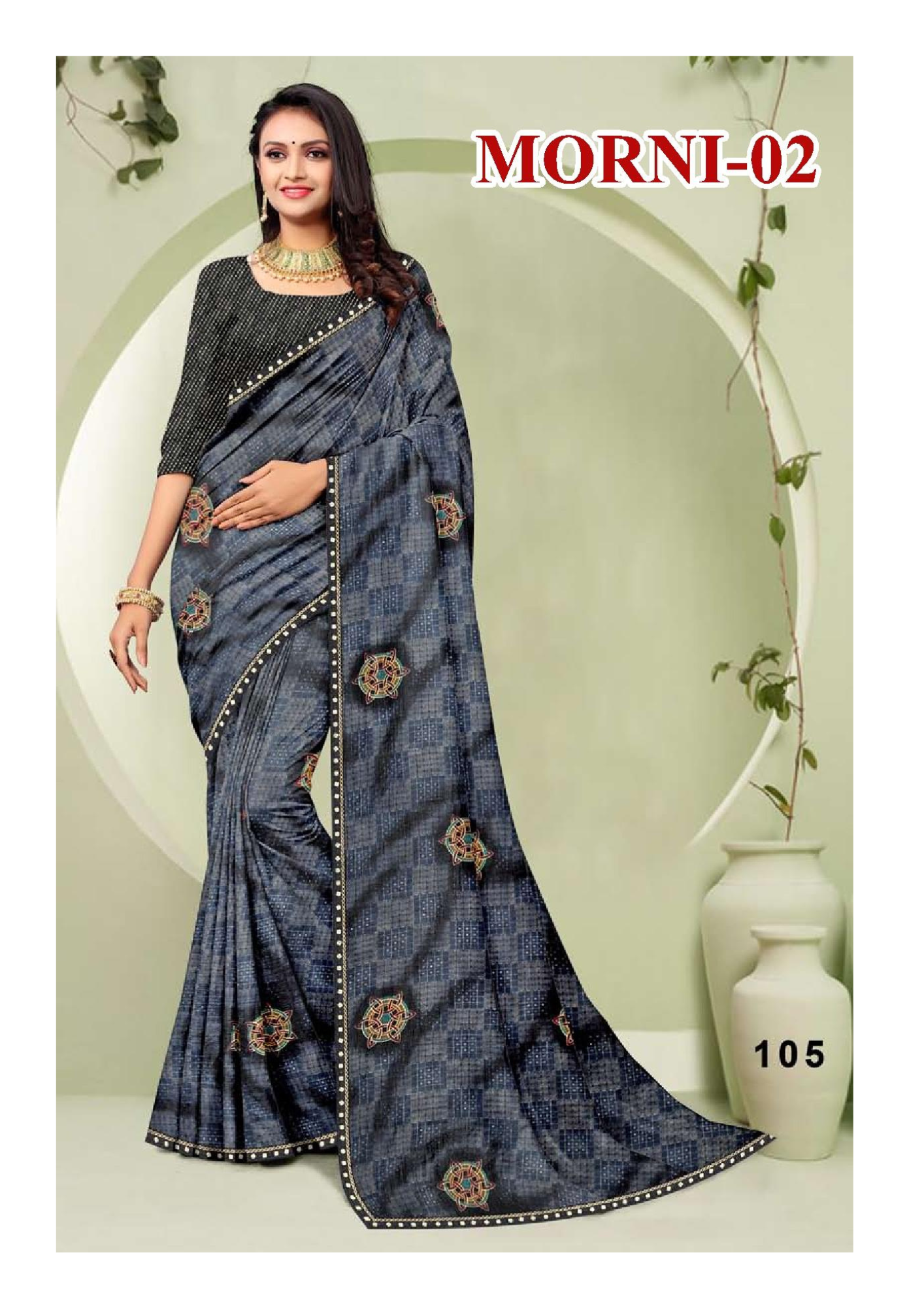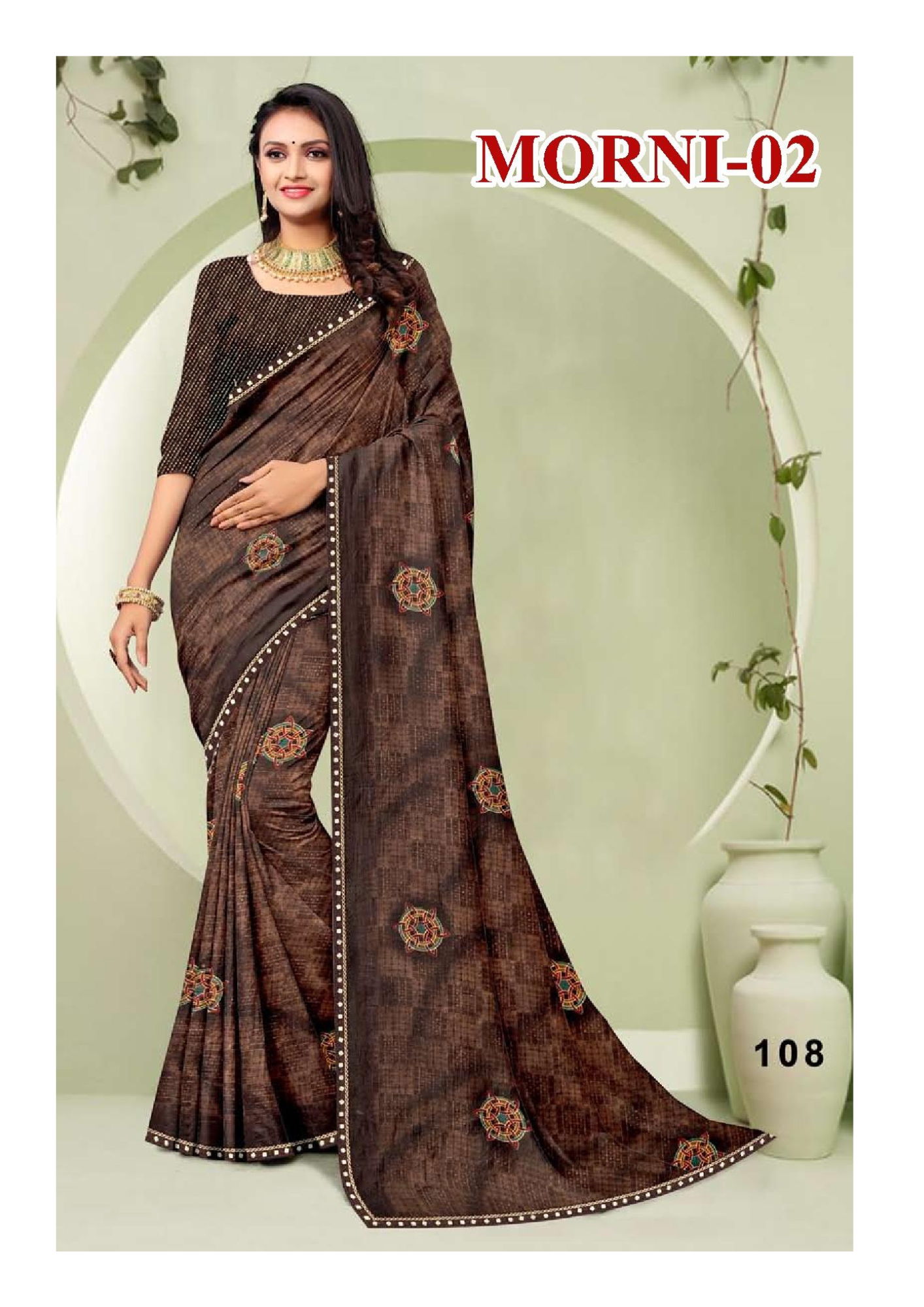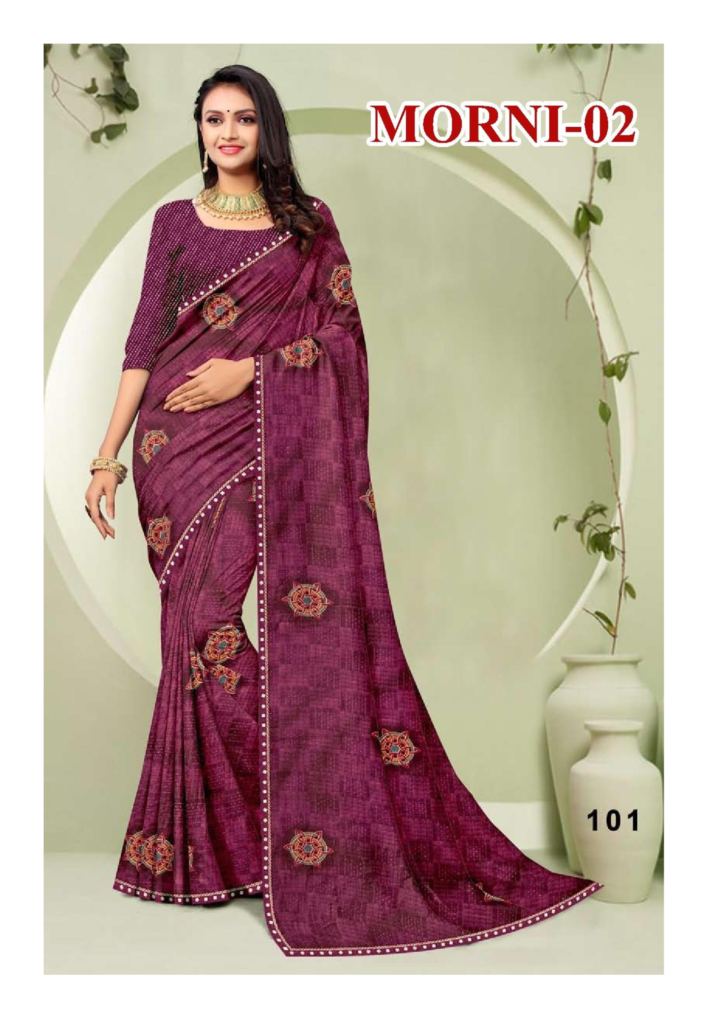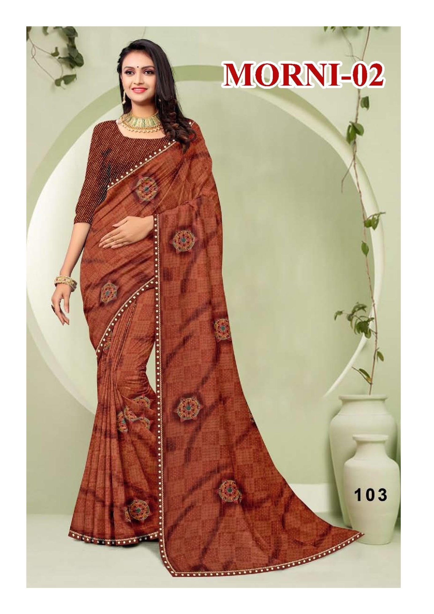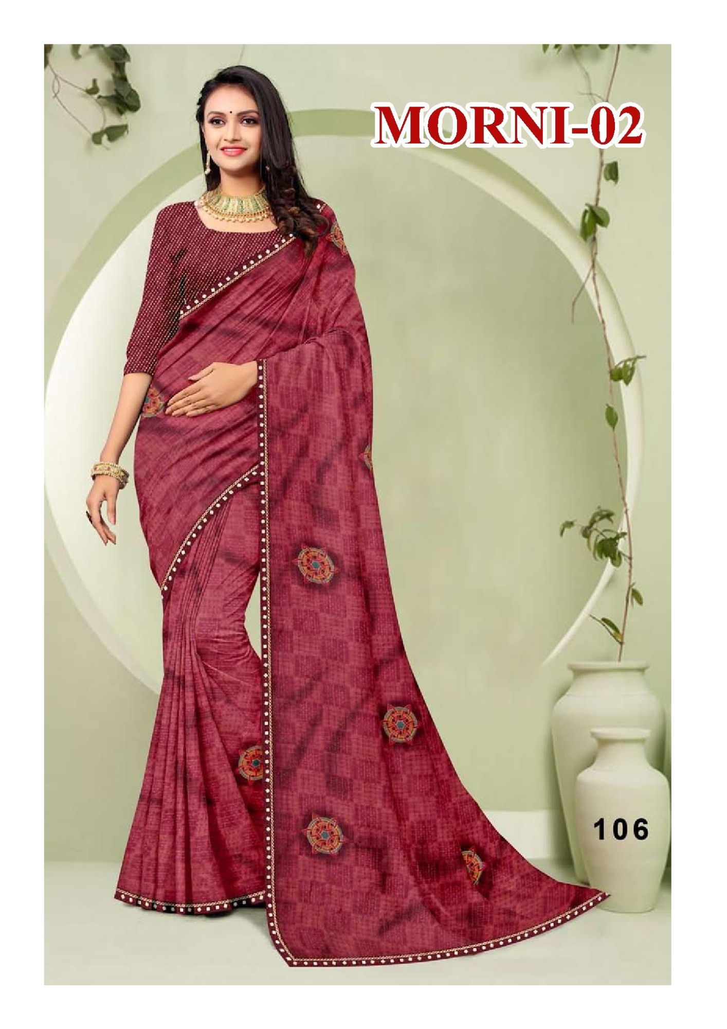 Morni-02 Elegant Maroon Printed Georgette Saree with Embellished Border & Blouse