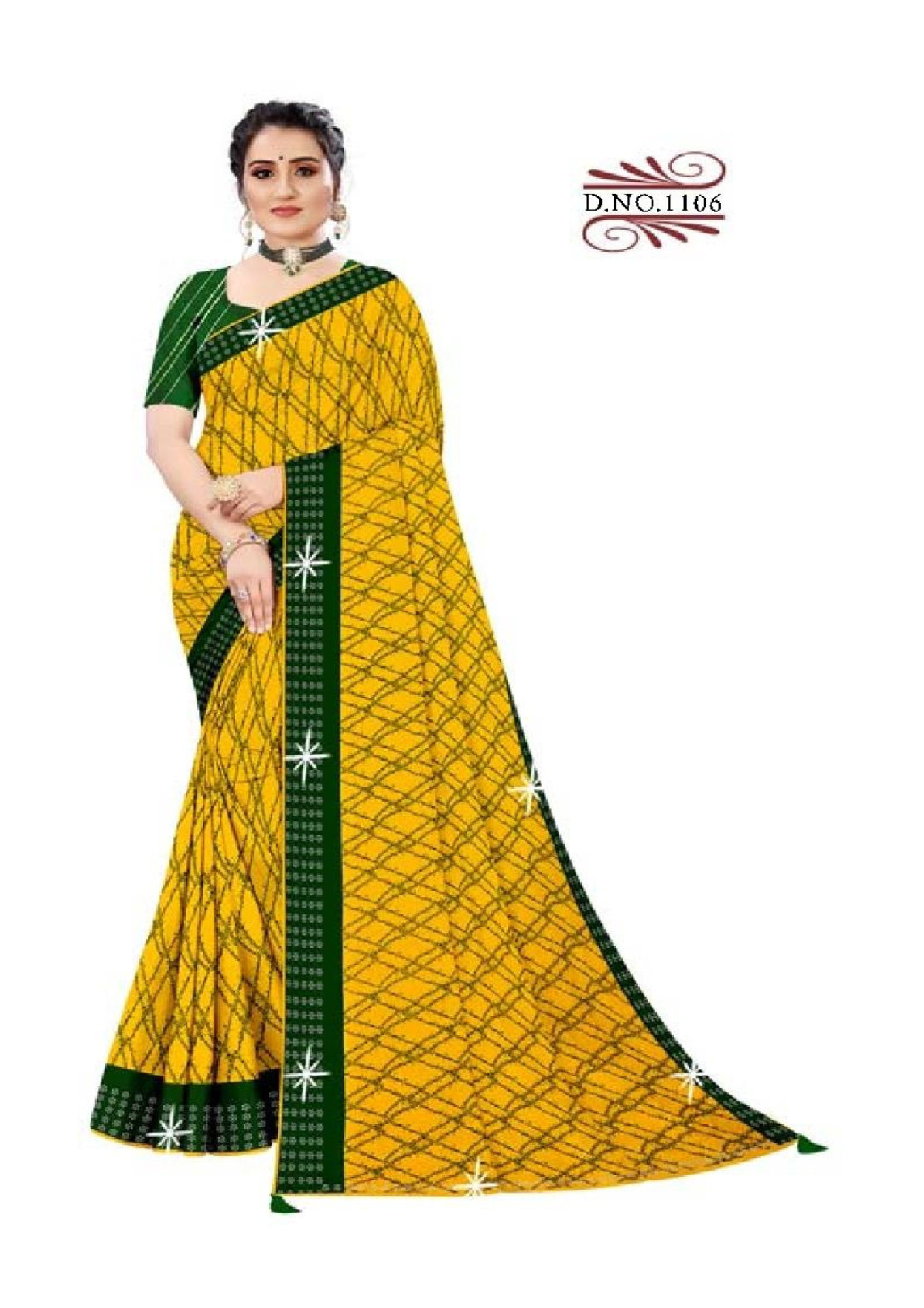 Add a touch of effortless elegance to your ethnic collection with this Mustard Yellow & Green Printed Saree. Crafted from premium lightweight fabric, this saree features a striking mustard base adorned with abstract line patterns and complemented by a rich green border. The bold yet simple design makes it a versatile pick for daily wear, office wear, festive occasions, or casual gatherings.