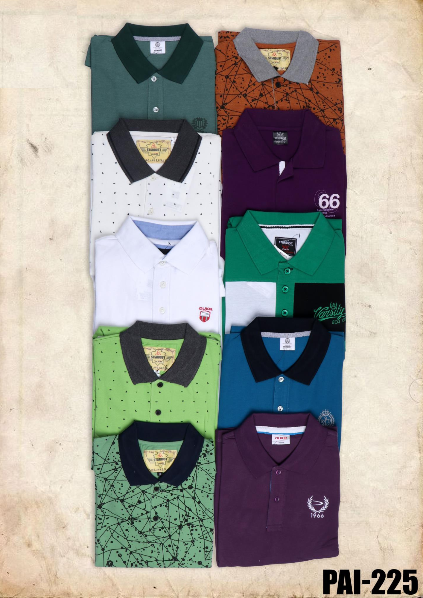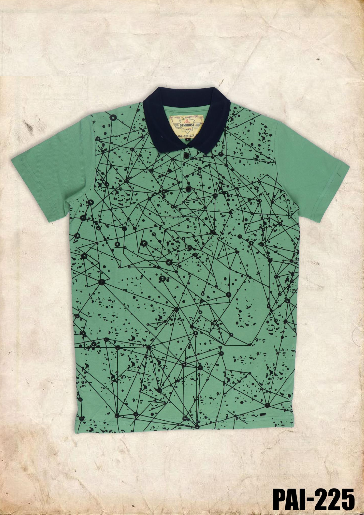Upgrade your casual wardrobe with the PAI-225 Abstract Print Polo T-Shirt – Green Edition. This stylish polo showcases a unique geometric and splatter abstract pattern in black across a fresh green base, paired with a sleek contrasting black collar for a sharp, modern look.