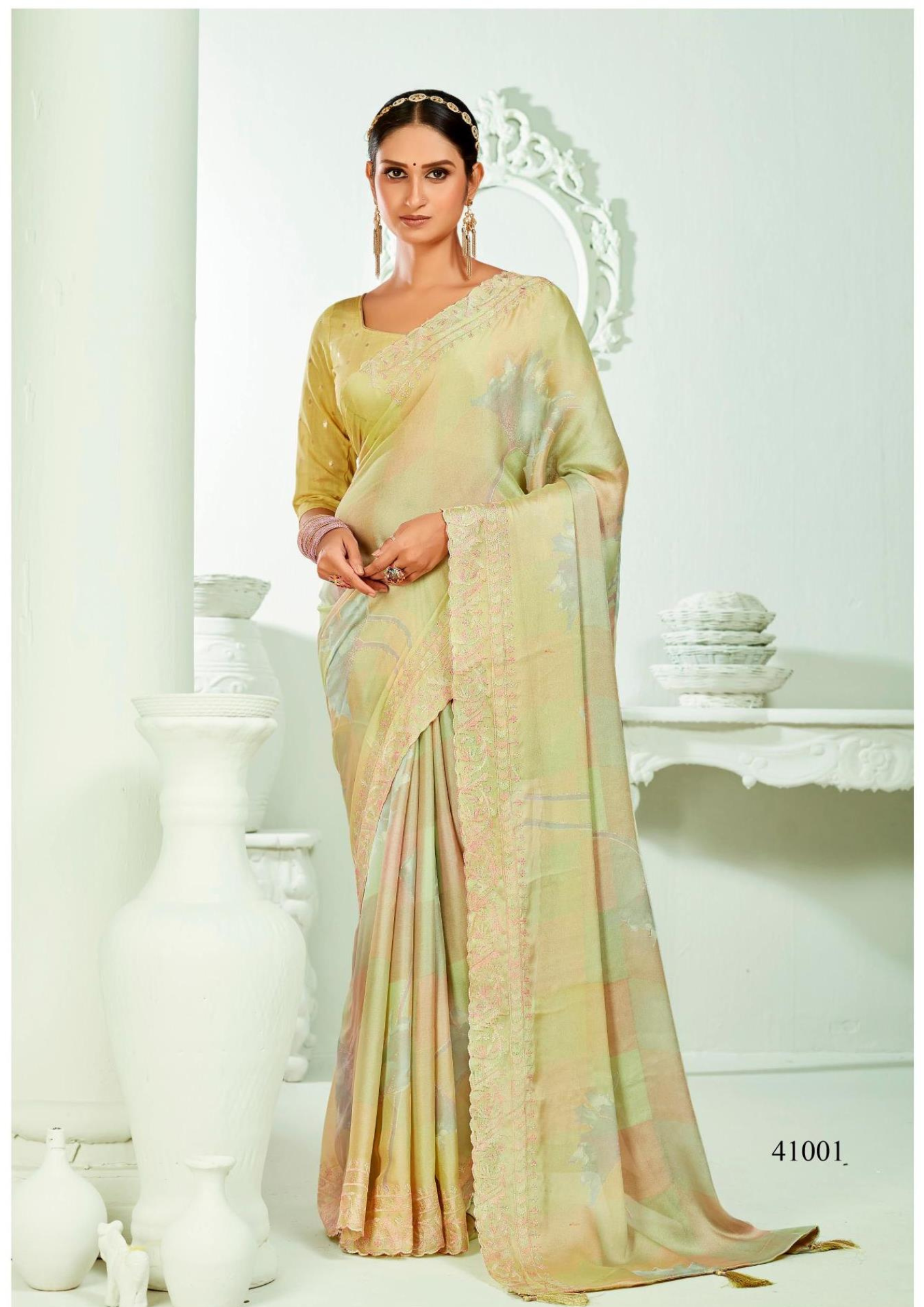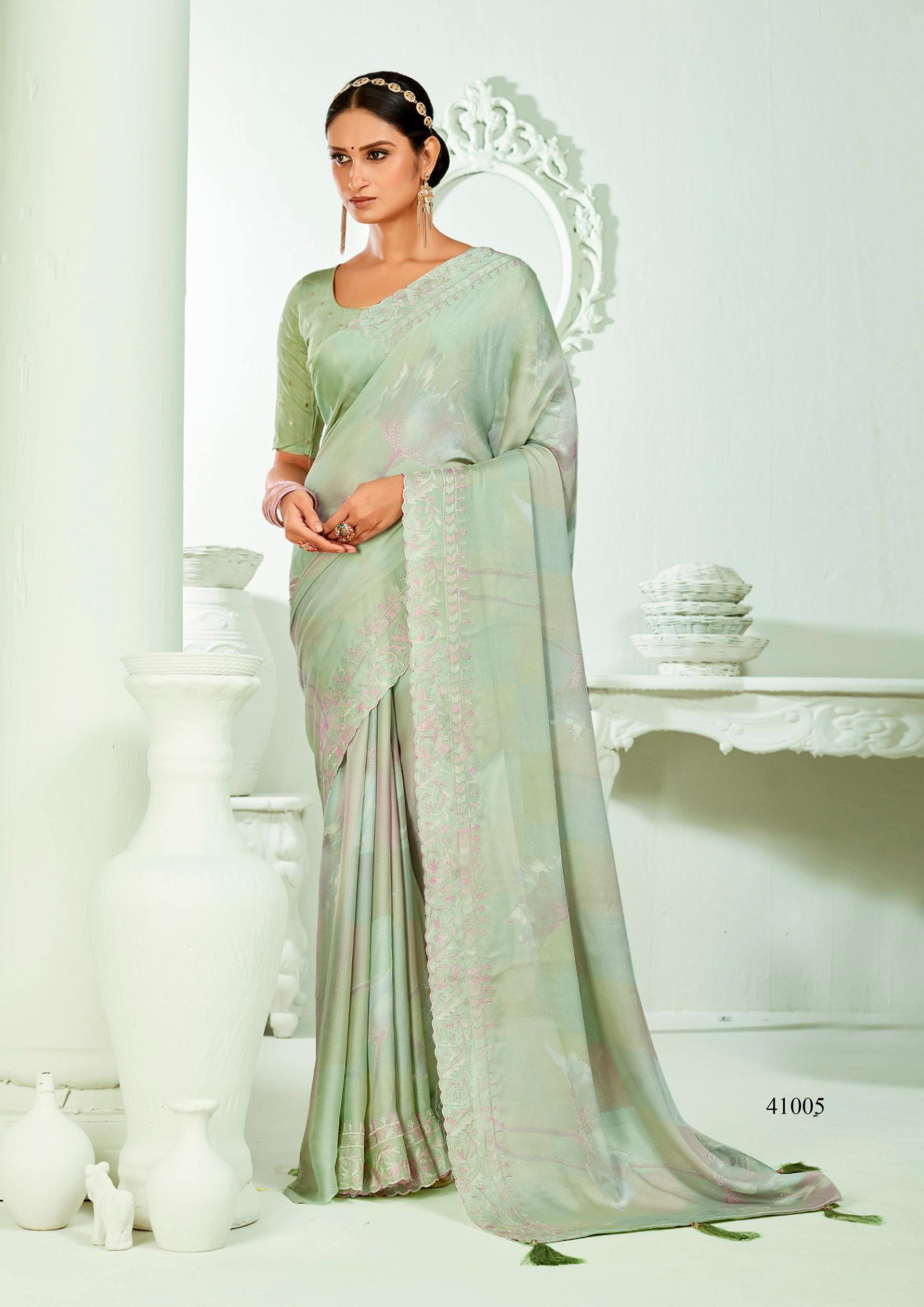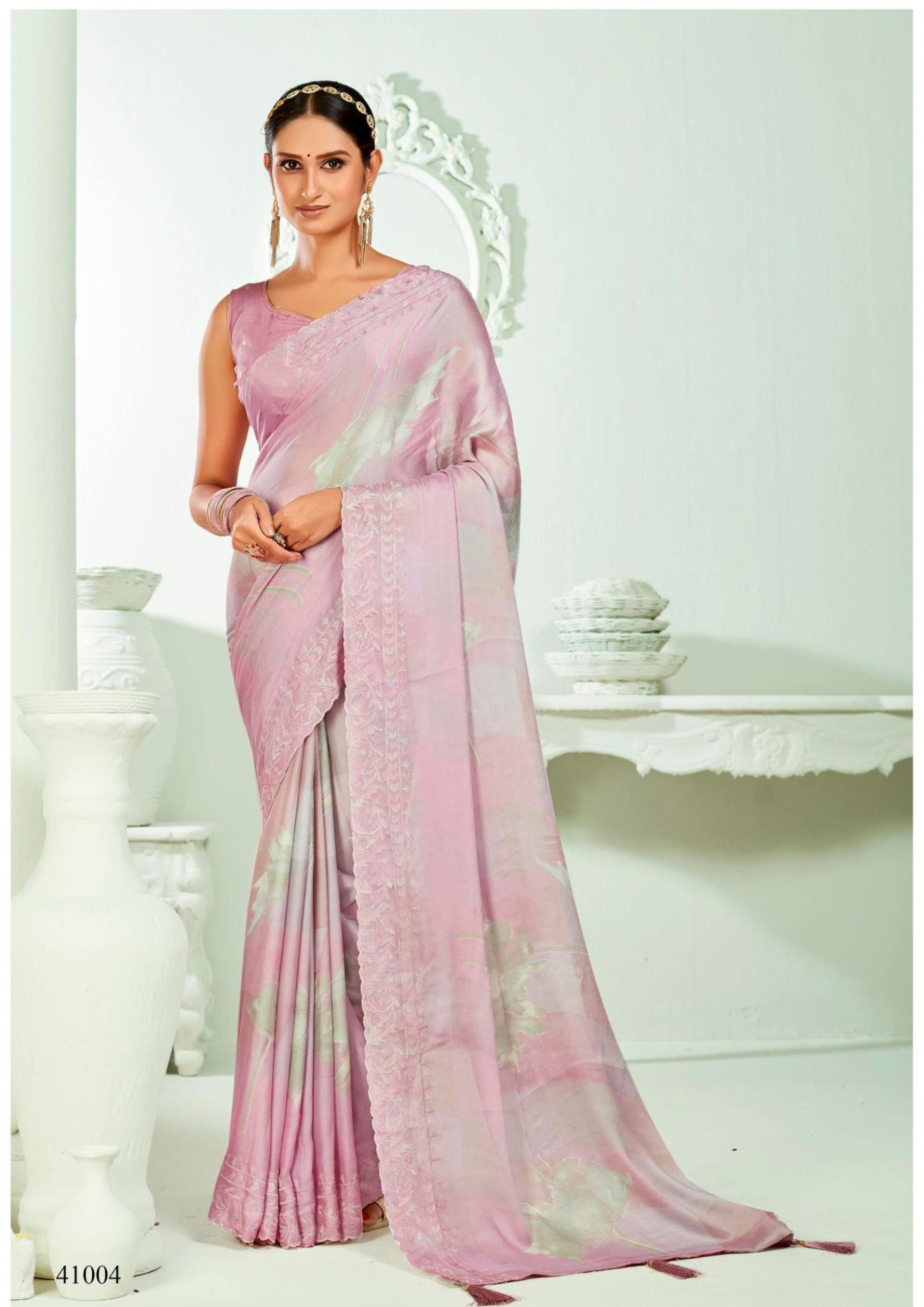 The lightweight fabric ensures effortless draping and supreme comfort, making it a perfect choice for festive occasions, daytime functions, receptions, or formal gatherings. The saree comes with a matching blouse piece, adding a touch of contemporary sophistication to its classic appeal. Pair it with statement jewelry and a soft makeup look to create a graceful ethnic ensemble.