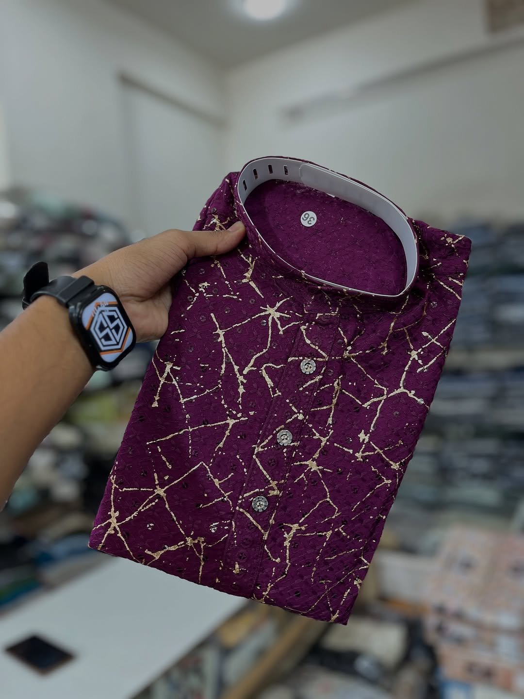Stand out in style with this Purple Designer Kurta, featuring an elegant golden abstract print that adds a modern festive touch. Crafted from a premium cotton blend, this kurta ensures comfort while keeping you stylish during long celebrations. Designed with a Mandarin collar, button placket, and full sleeves, it’s perfect for weddings, festive occasions, and traditional gatherings.