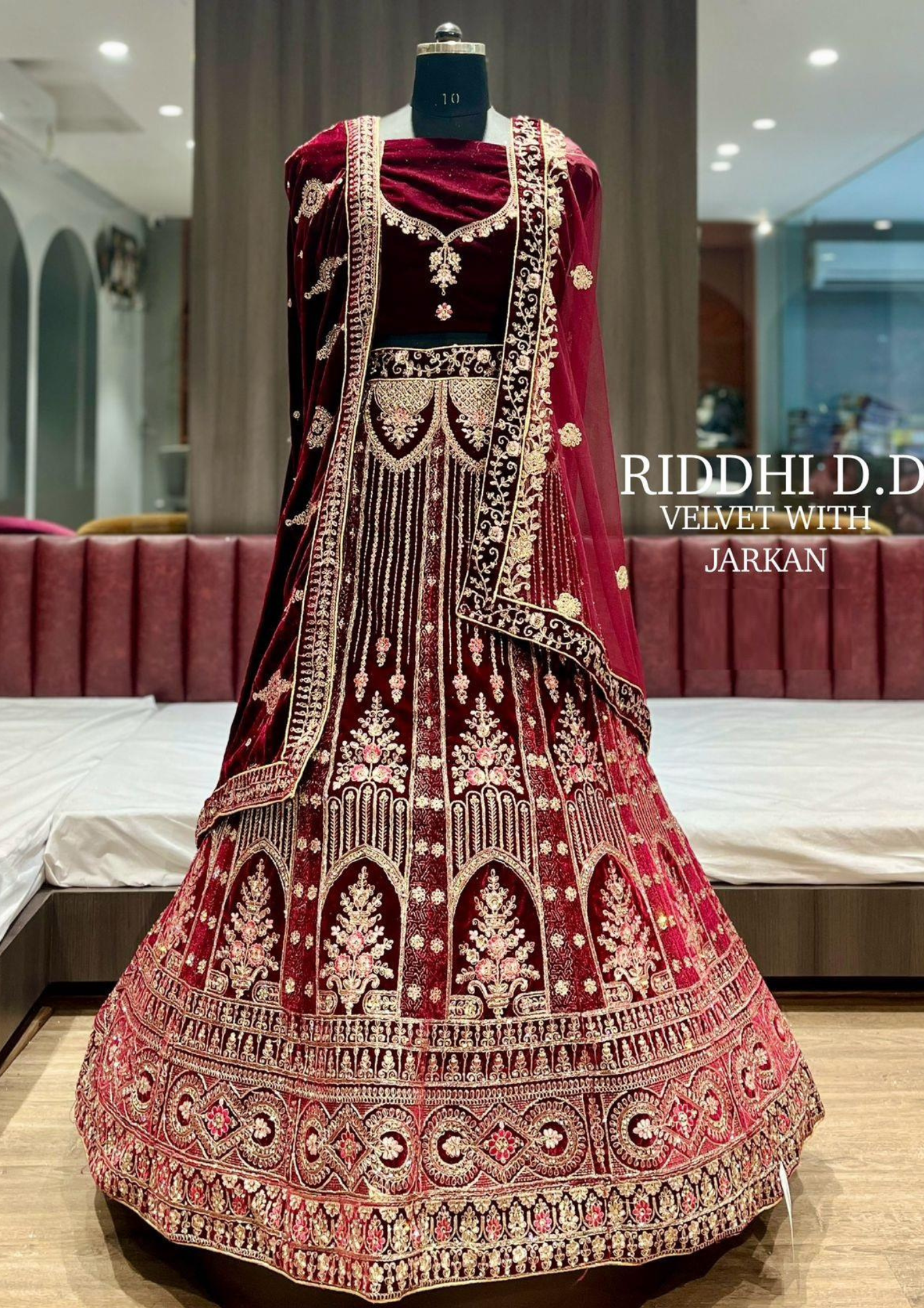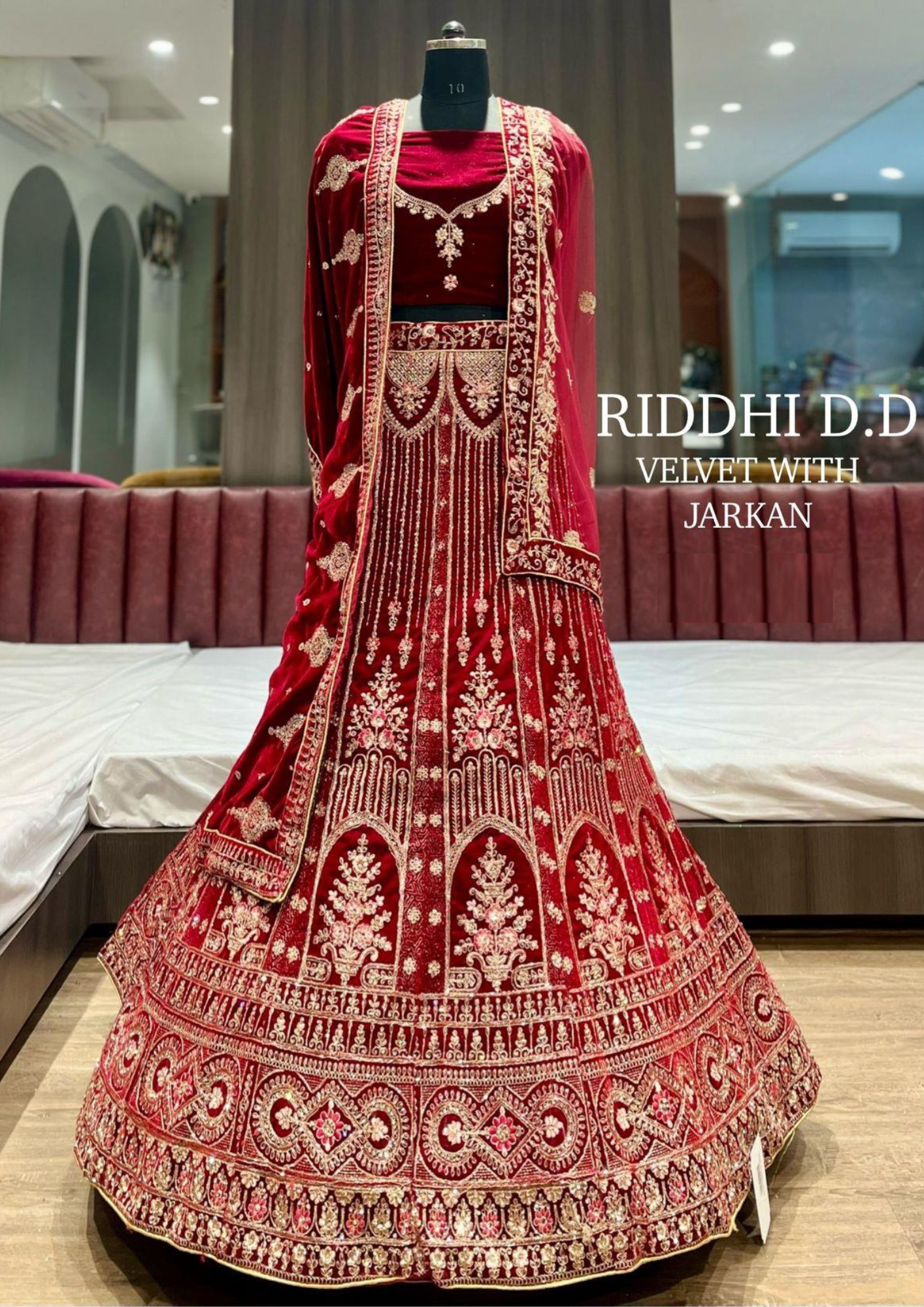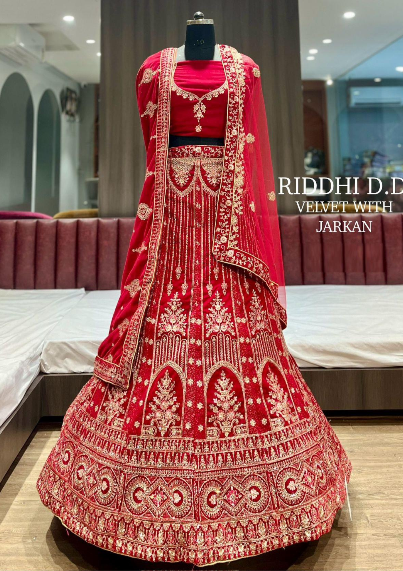Riddhi D.D Velvet Bridal Lehenga with Jarkan Embroidery