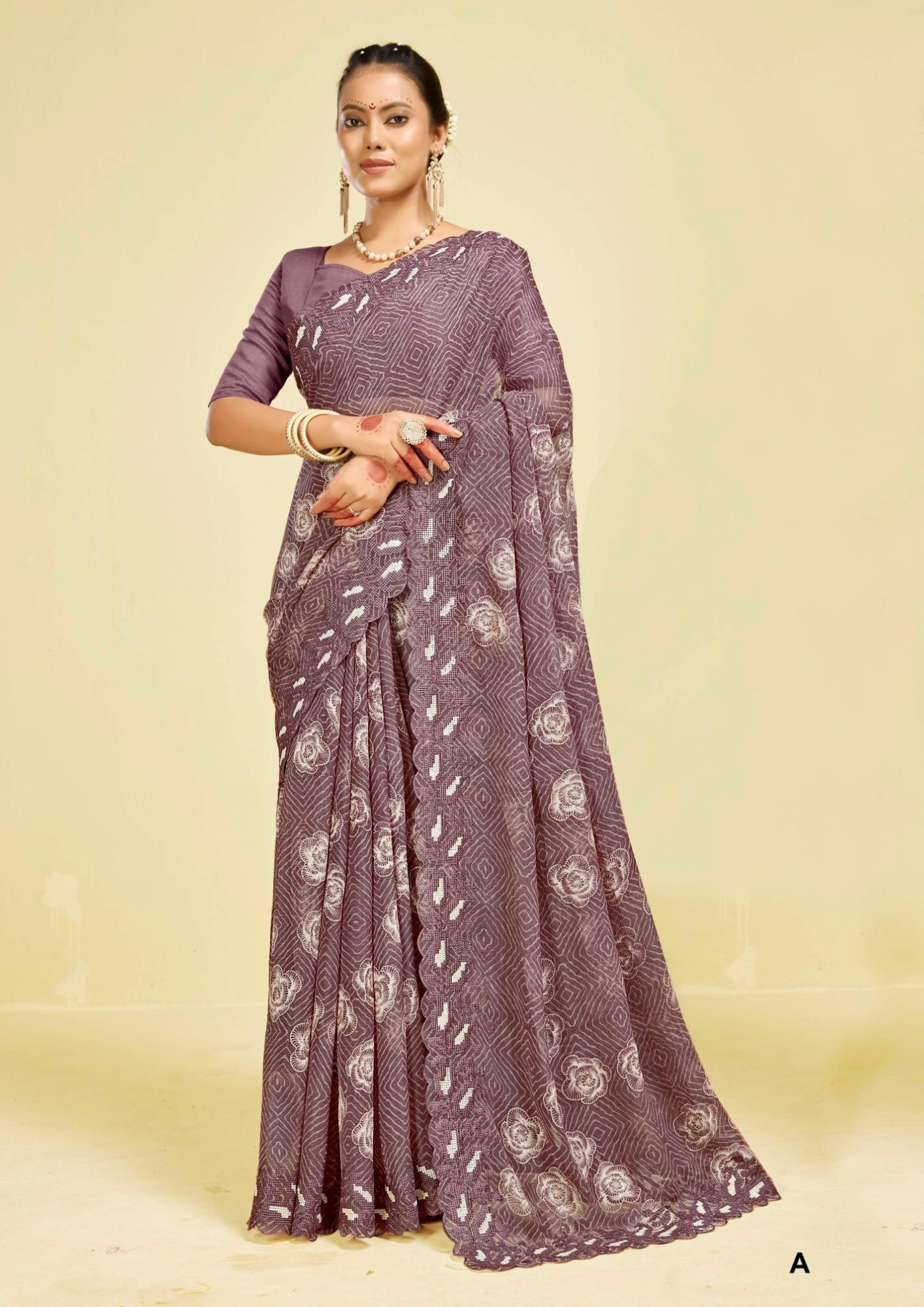 The subtle lavender-purple tone adds a regal touch, while the matching blouse enhances the overall sophistication. Whether you’re attending festive celebrations, traditional ceremonies, or family gatherings, this saree will make you stand out with effortless grace. Pair it with traditional jewelry and soft makeup for a complete ethnic look.