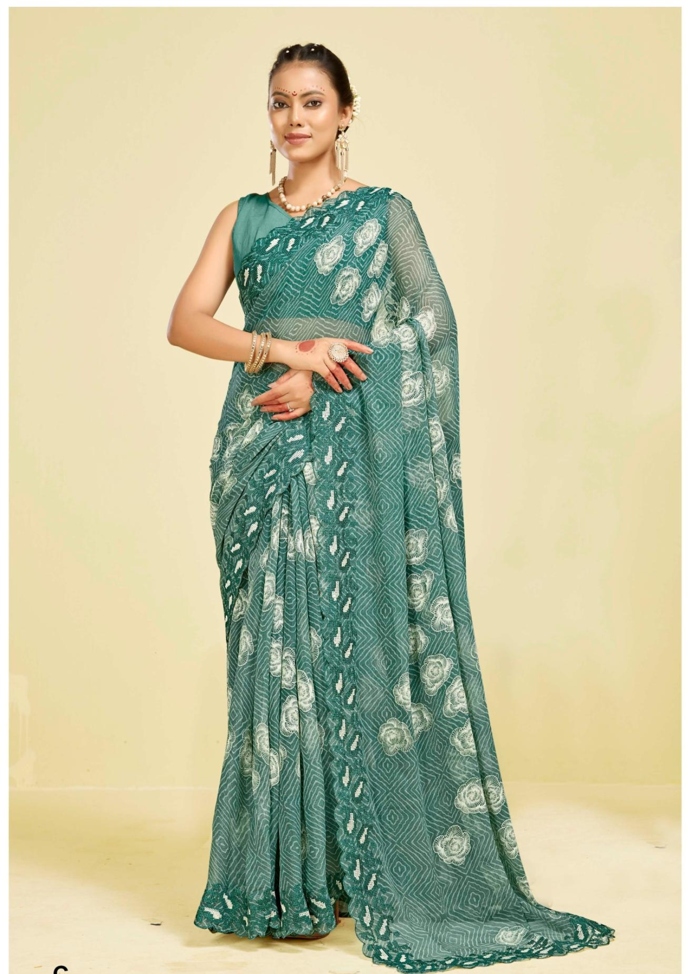 Embrace elegance and tradition with our Royal Bloom Geometric Floral Printed Saree, a timeless blend of contemporary patterns and ethnic charm. Designed with intricate geometric motifs and delicate floral prints, this saree is crafted from a soft, lightweight fabric that ensures comfort without compromising on style.