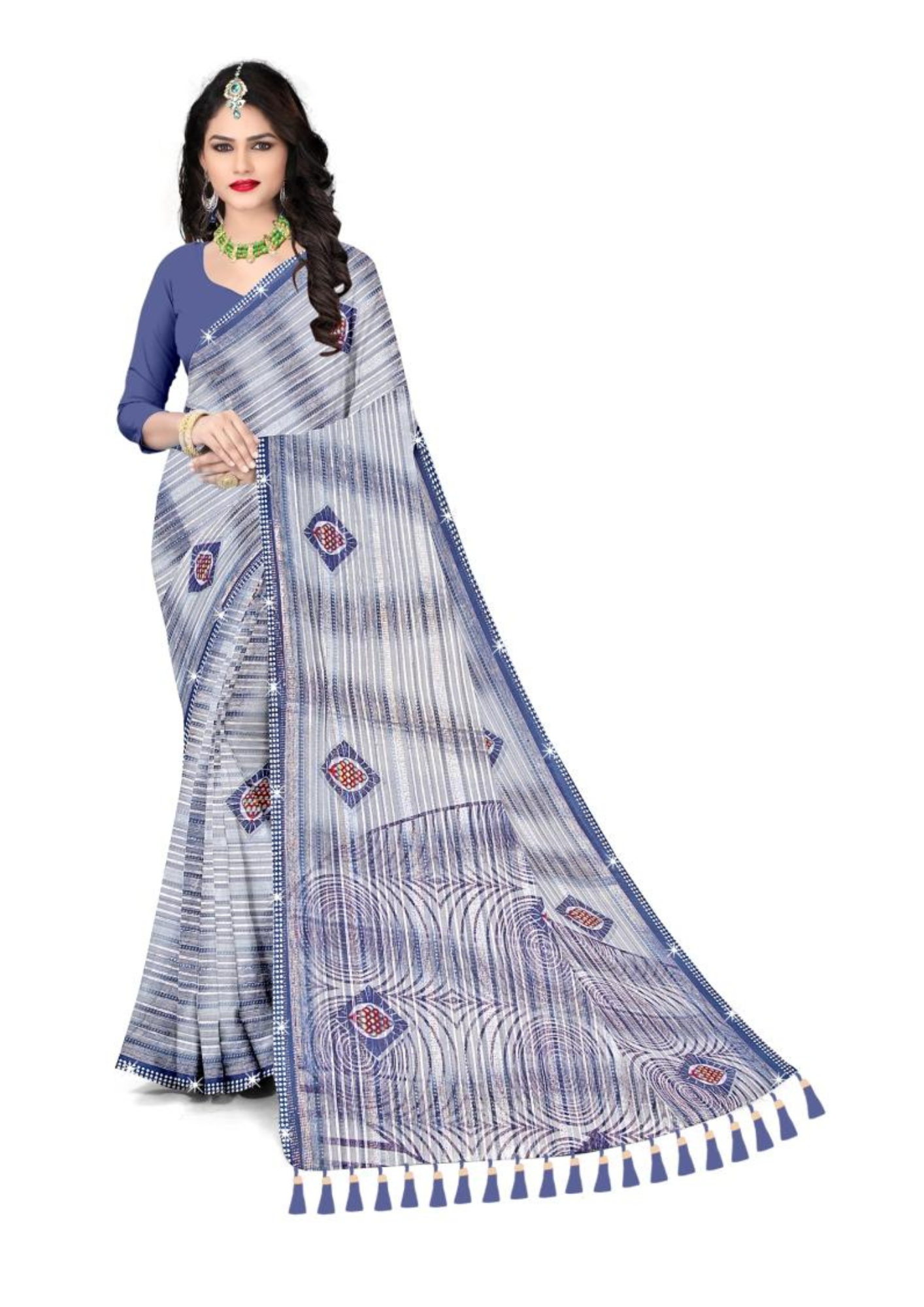 The tassel-accented border adds a playful touch to its classic design, making it a versatile choice for festive occasions, casual gatherings, office wear, or cultural events. Effortless to drape and comfortable to wear all day long, this saree ensures you look graceful without compromising on comfort.