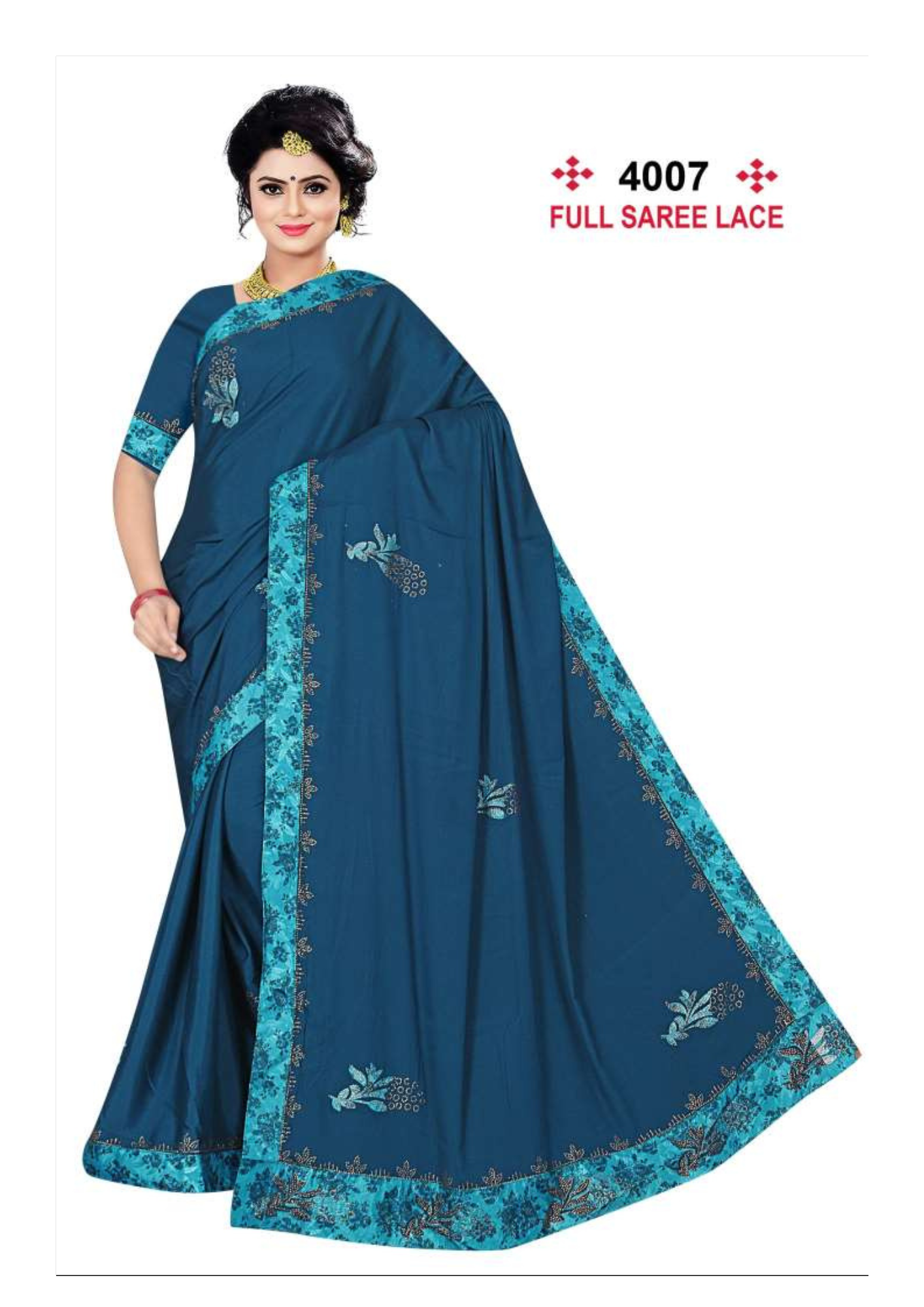 Enhance your ethnic grace with this stunning Teal Blue Embroidered Saree, designed with an elegant floral lace border running across the entire drape. Crafted from premium-quality fabric, it offers a lightweight and comfortable feel while maintaining a luxurious appeal. The delicate thread embroidery motifs add a subtle charm, making this saree ideal for festive celebrations, traditional functions, or evening gatherings. Paired with a matching teal blue blouse, this ensemble beautifully blends simplicity with sophistication.